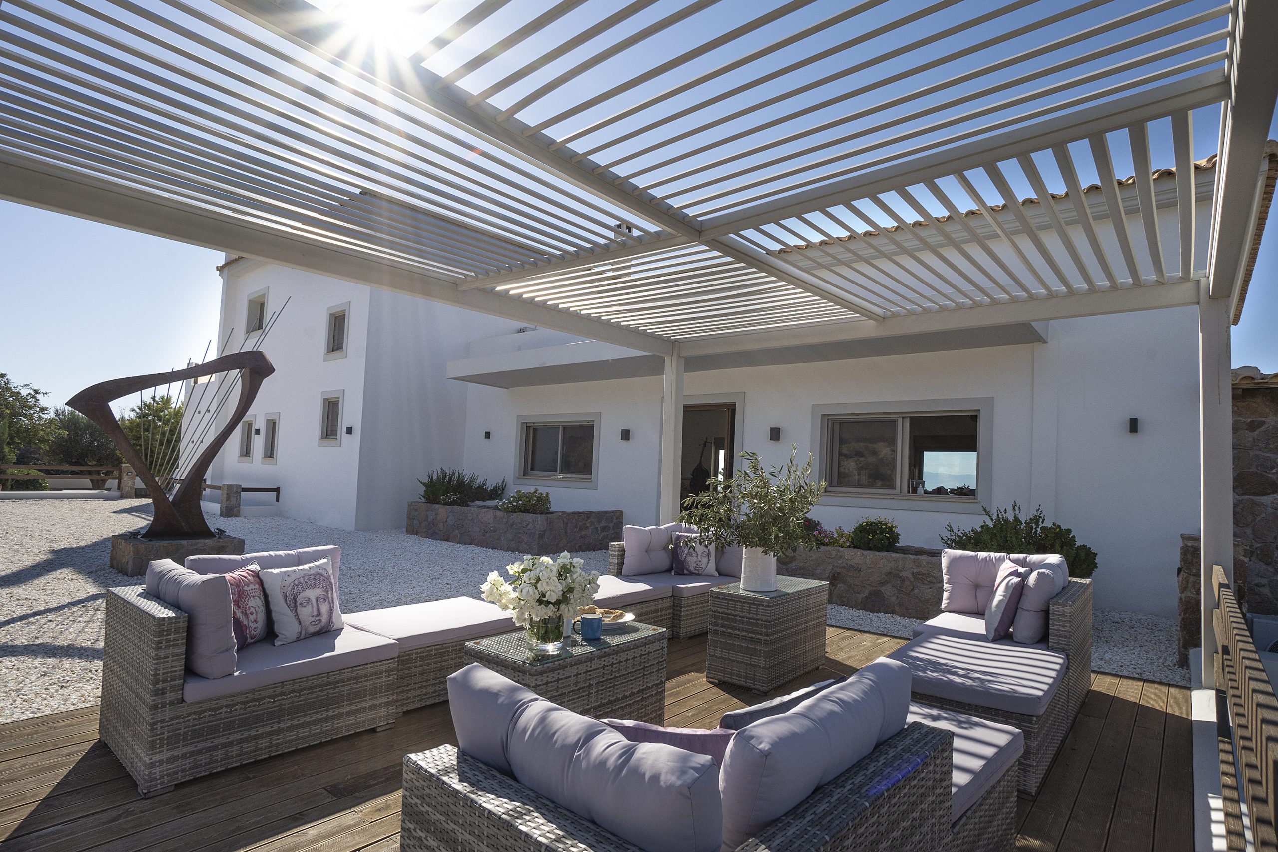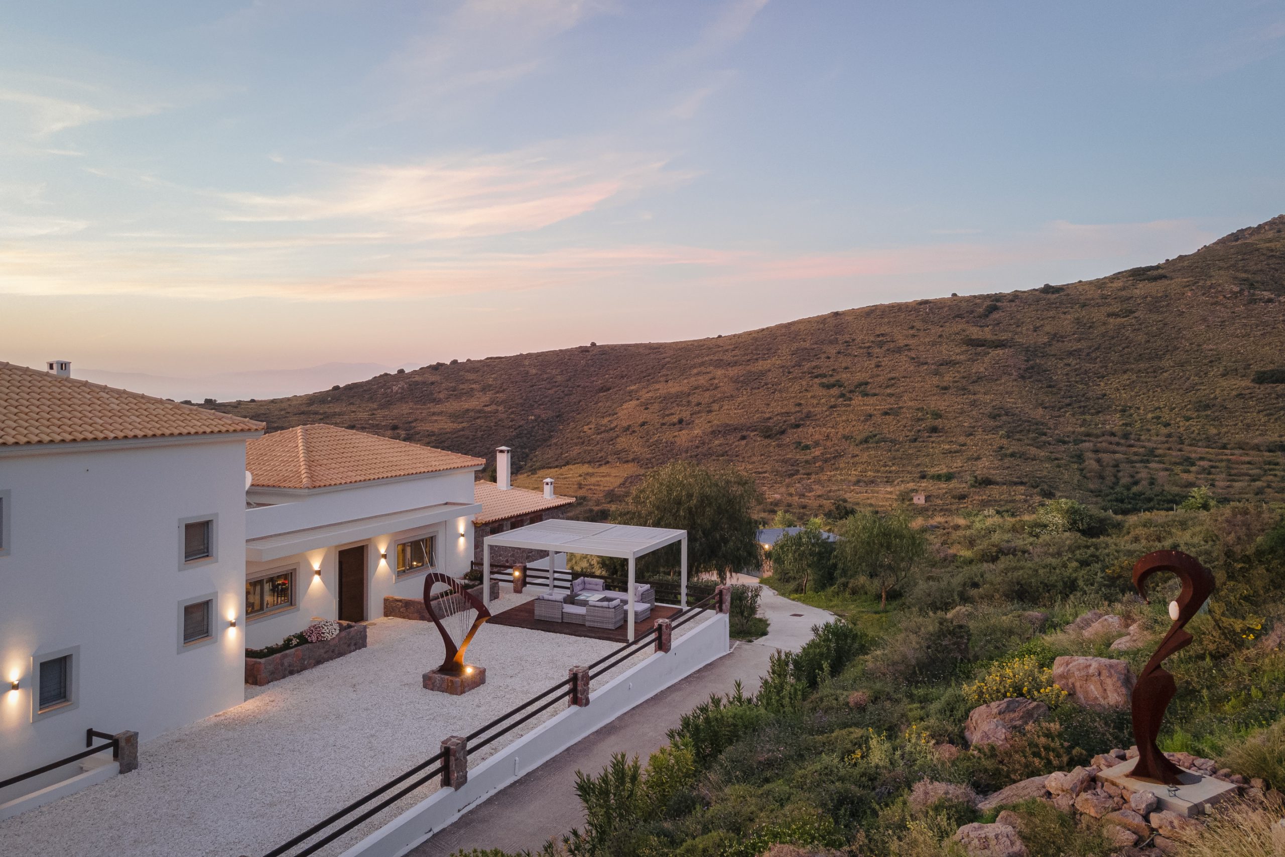 Surrounded by greenery and open skies, Villa Enopia’s outdoor areas are designed for long summer days and magical evenings.