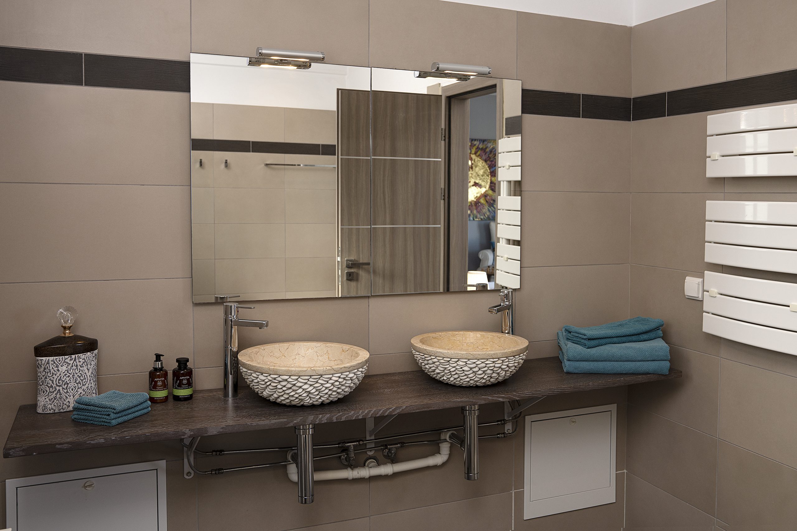 Two double bedrooms with en-suite bathrooms and terrace access