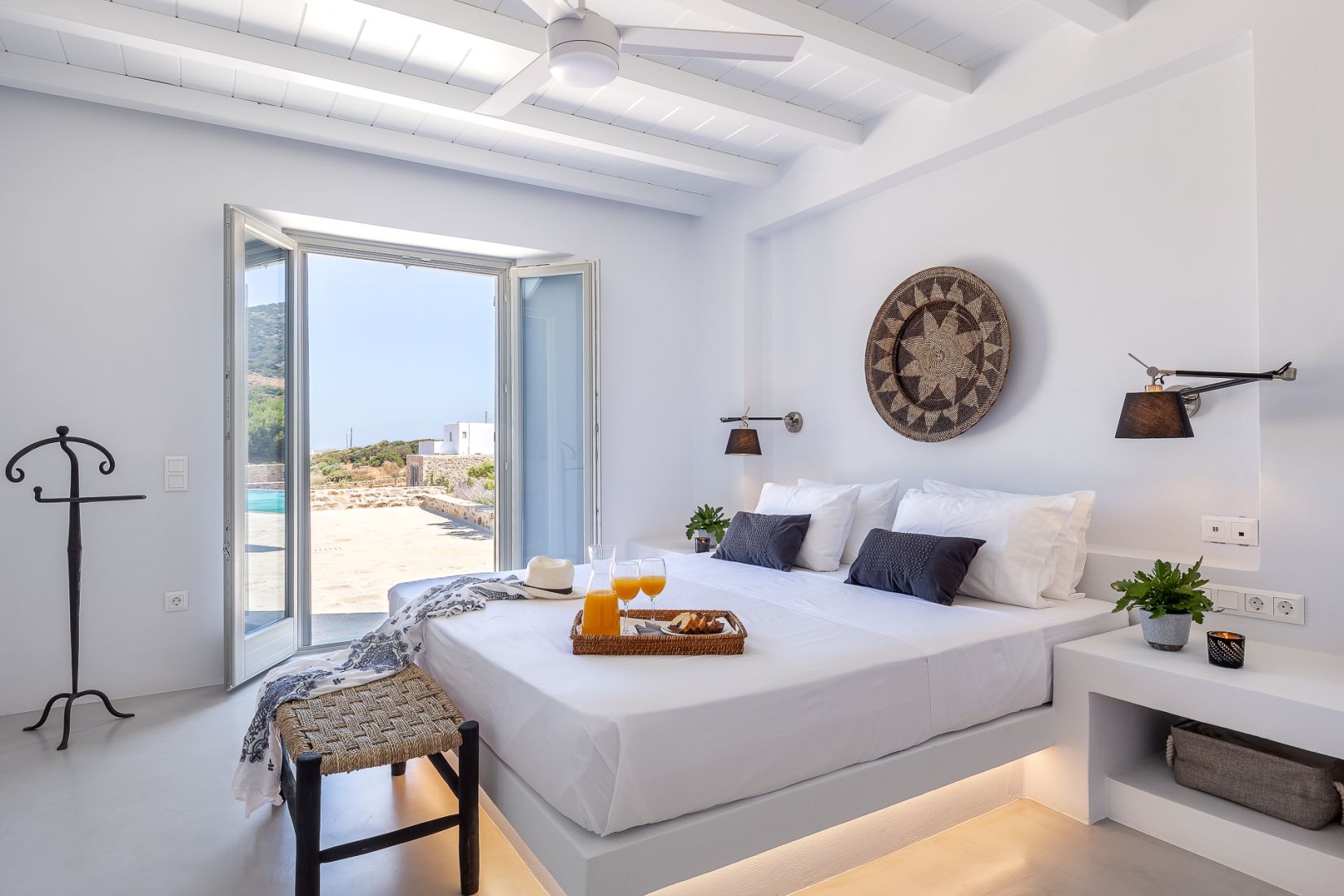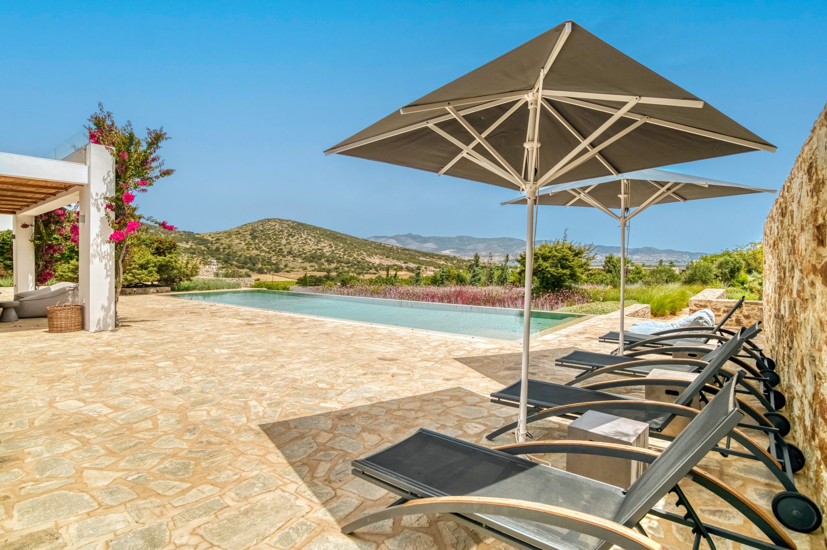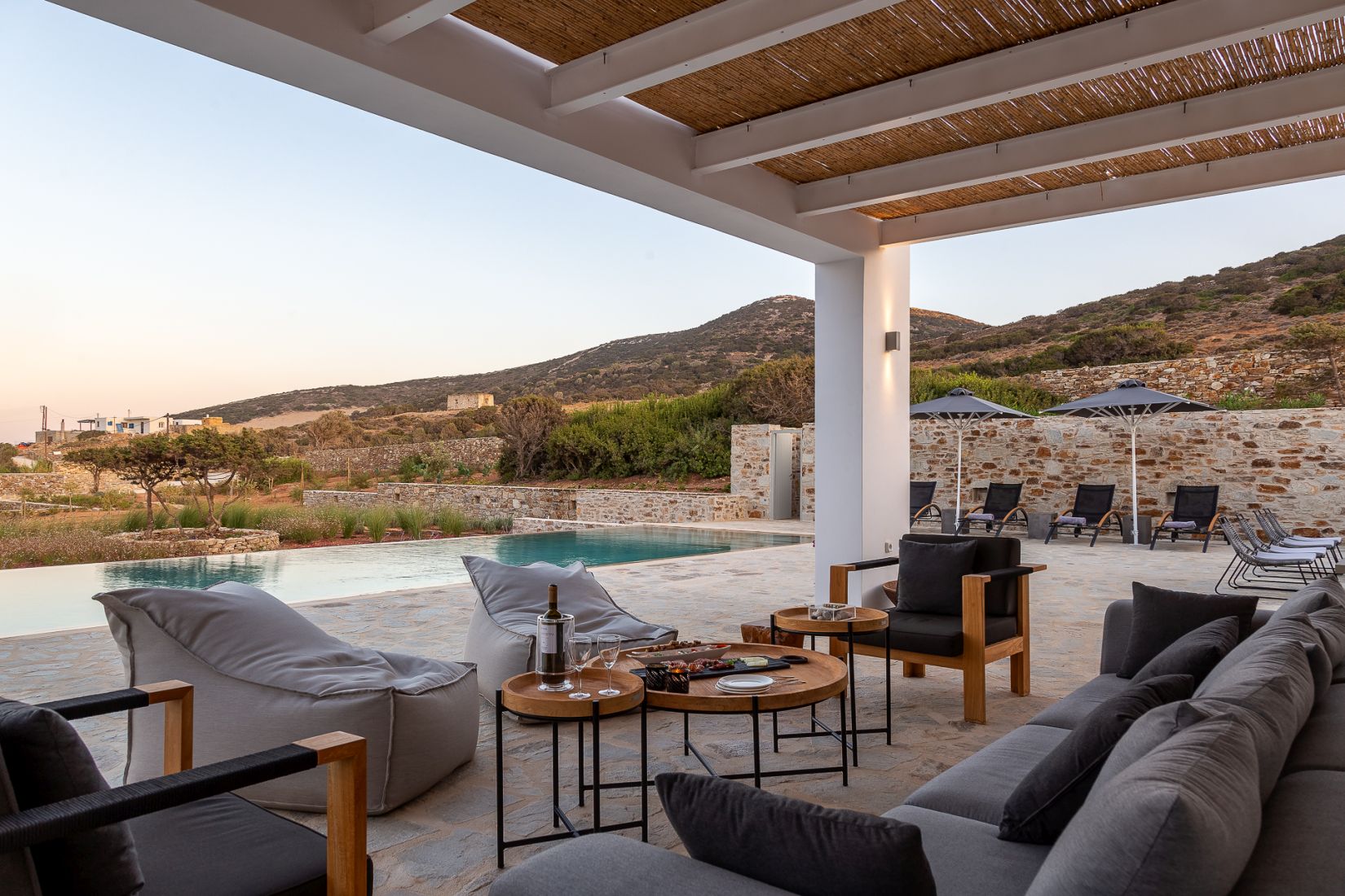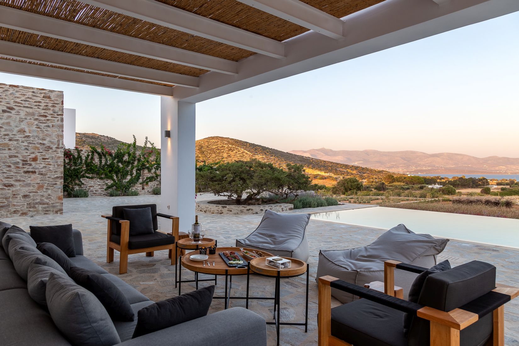 Villa Ponente is an elegant contemporary retreat set in the peaceful countryside of Antiparos, offering privacy, space, and refined comfort just minutes from the sea. Surrounded by natural landscapes and open horizons, this beautifully designed luxury villa is ideally positioned only 4.5 km from Antiparos Port and approximately 900 meters from the eastern coastline, near the pristine sands of Glyfa Beach. With easy access via a paved road, Villa Ponente is an exceptional choice for families and groups seeking a high-end Cycladic villa with modern amenities, generous outdoor living areas, and seamless indoor-outdoor flow.