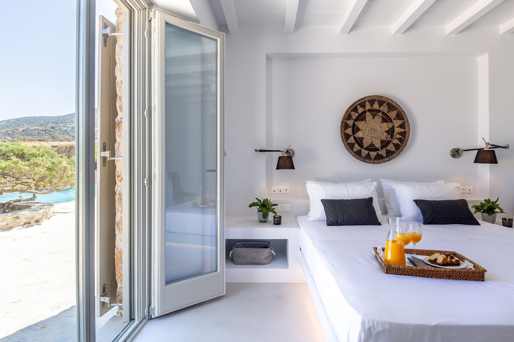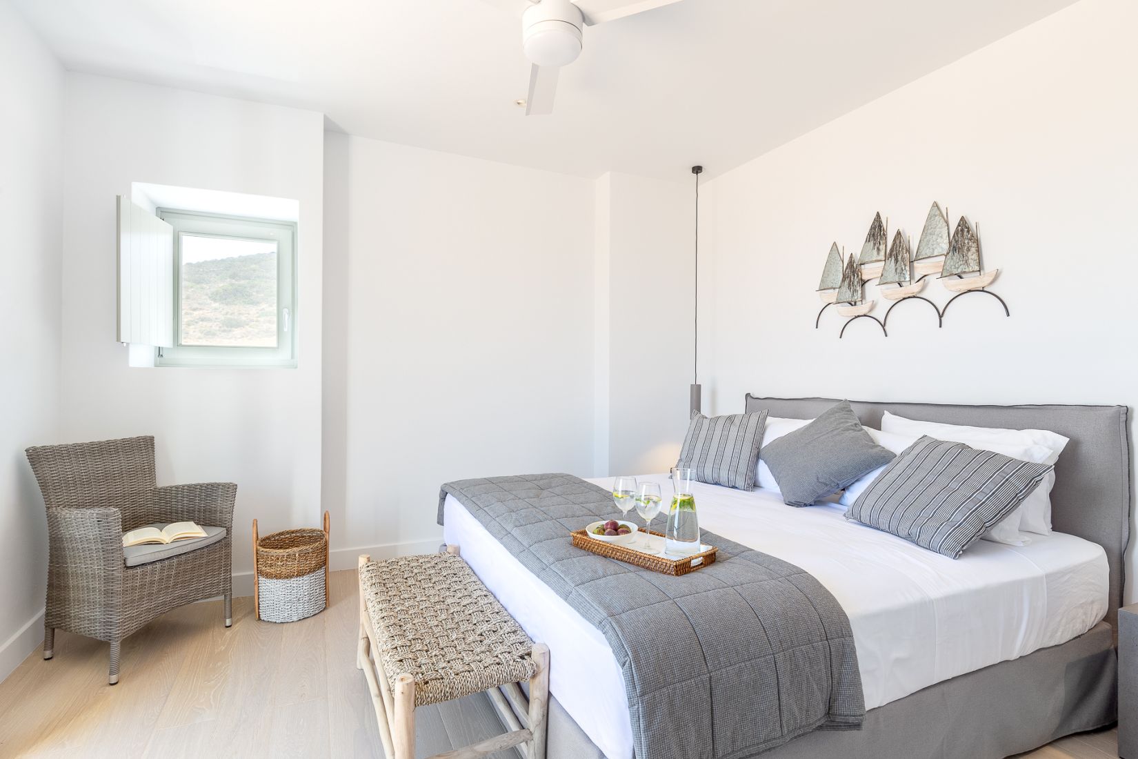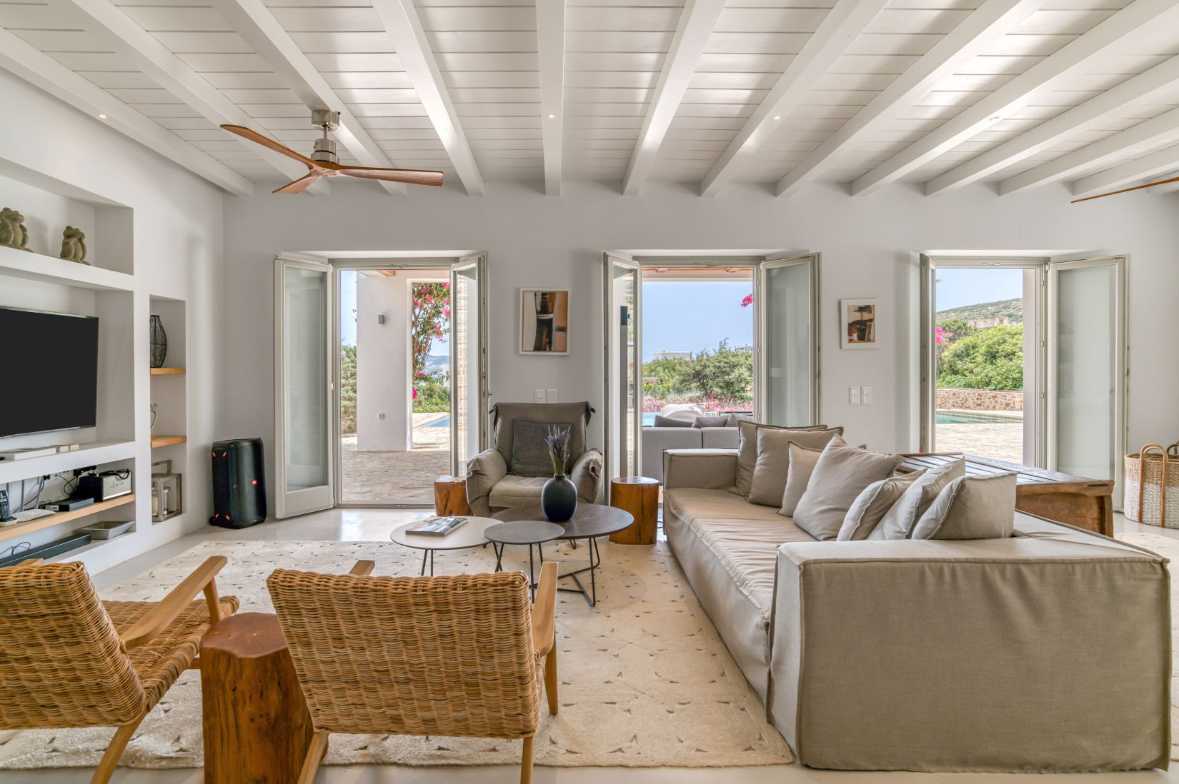 Villa Ponente is an elegant contemporary retreat set in the peaceful countryside of Antiparos, offering privacy, space, and refined comfort just minutes from the sea. Surrounded by natural landscapes and open horizons, this beautifully designed luxury villa is ideally positioned only 4.5 km from Antiparos Port and approximately 900 meters from the eastern coastline, near the pristine sands of Glyfa Beach. With easy access via a paved road, Villa Ponente is an exceptional choice for families and groups seeking a high-end Cycladic villa with modern amenities, generous outdoor living areas, and seamless indoor-outdoor flow.
