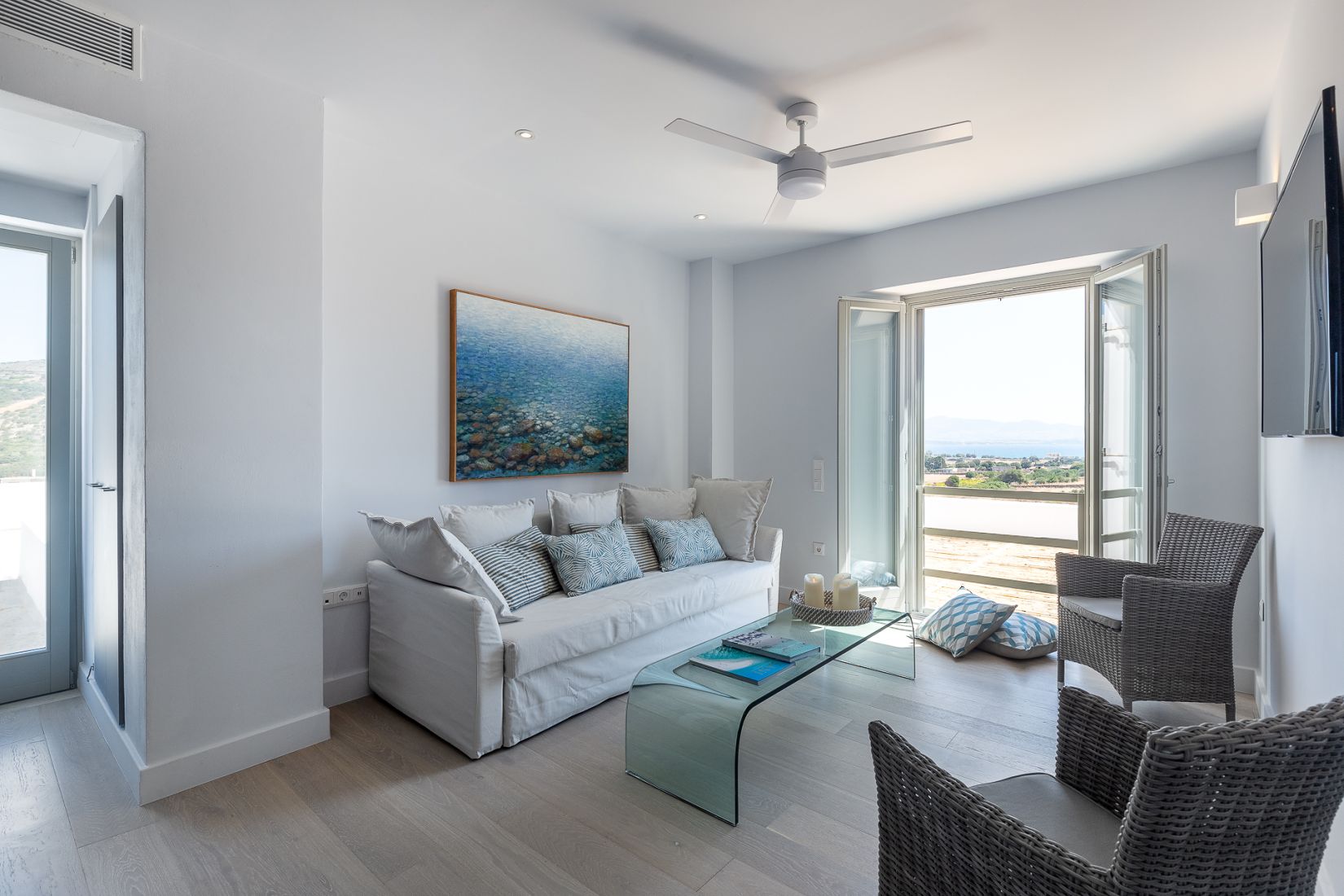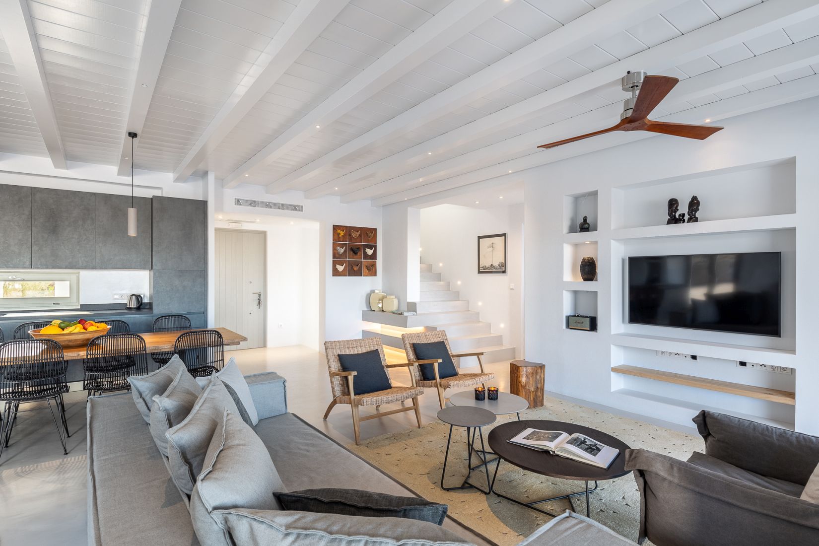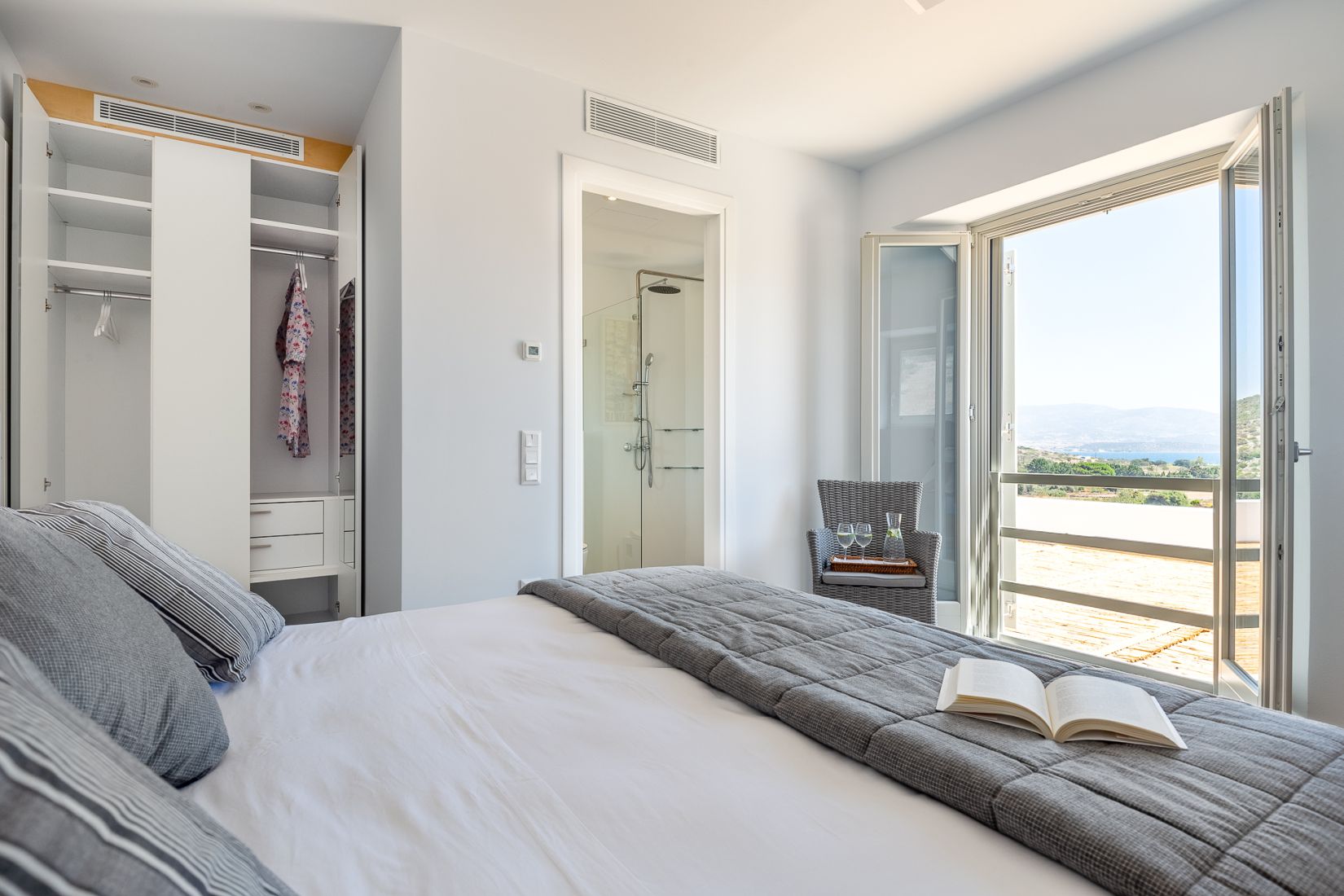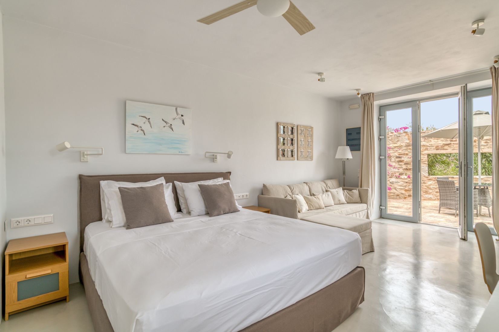 Villa Ponente is an elegant contemporary retreat set in the peaceful countryside of Antiparos, offering privacy, space, and refined comfort just minutes from the sea. Surrounded by natural landscapes and open horizons, this beautifully designed luxury villa is ideally positioned only 4.5 km from Antiparos Port and approximately 900 meters from the eastern coastline, near the pristine sands of Glyfa Beach. With easy access via a paved road, Villa Ponente is an exceptional choice for families and groups seeking a high-end Cycladic villa with modern amenities, generous outdoor living areas, and seamless indoor-outdoor flow.