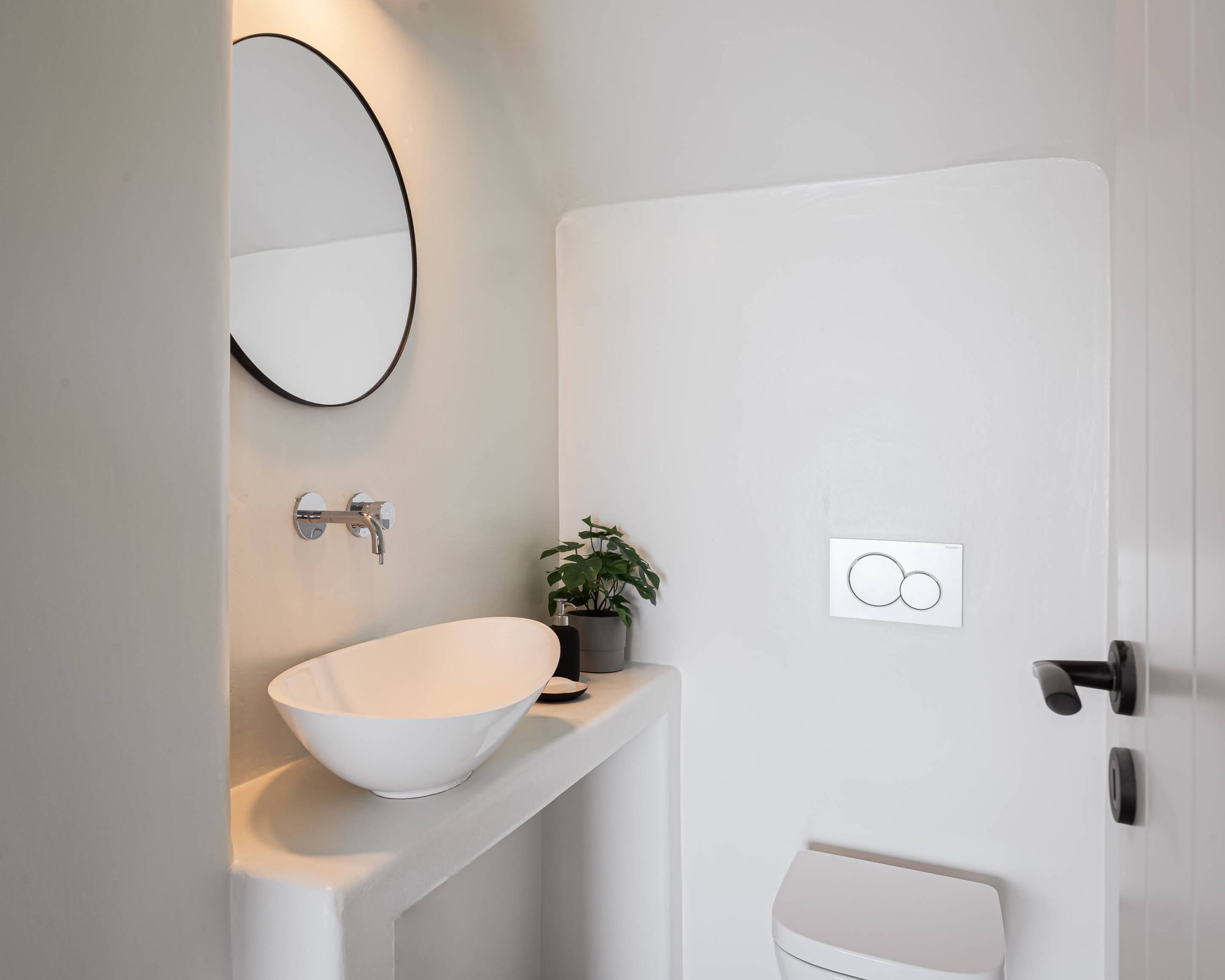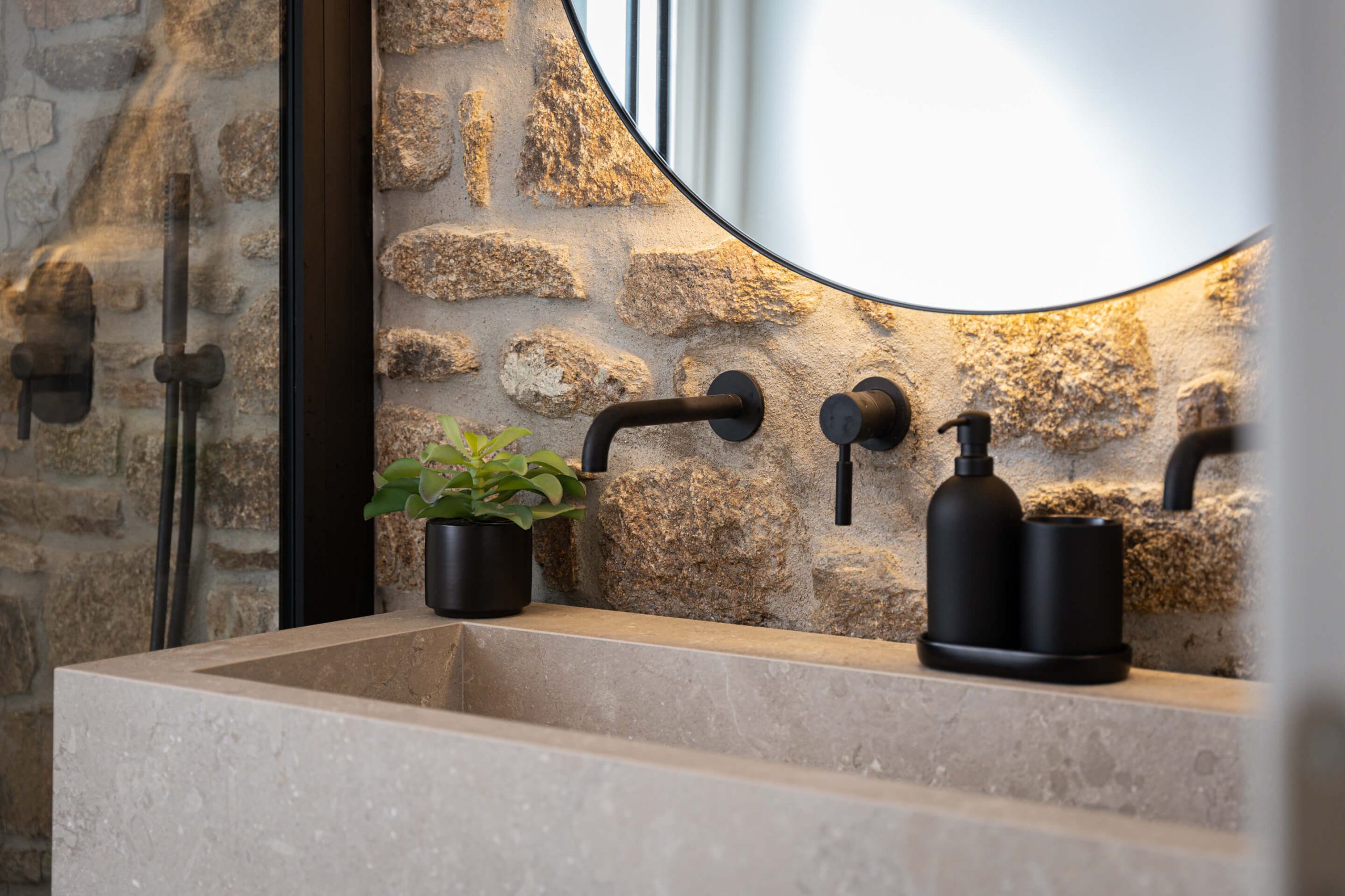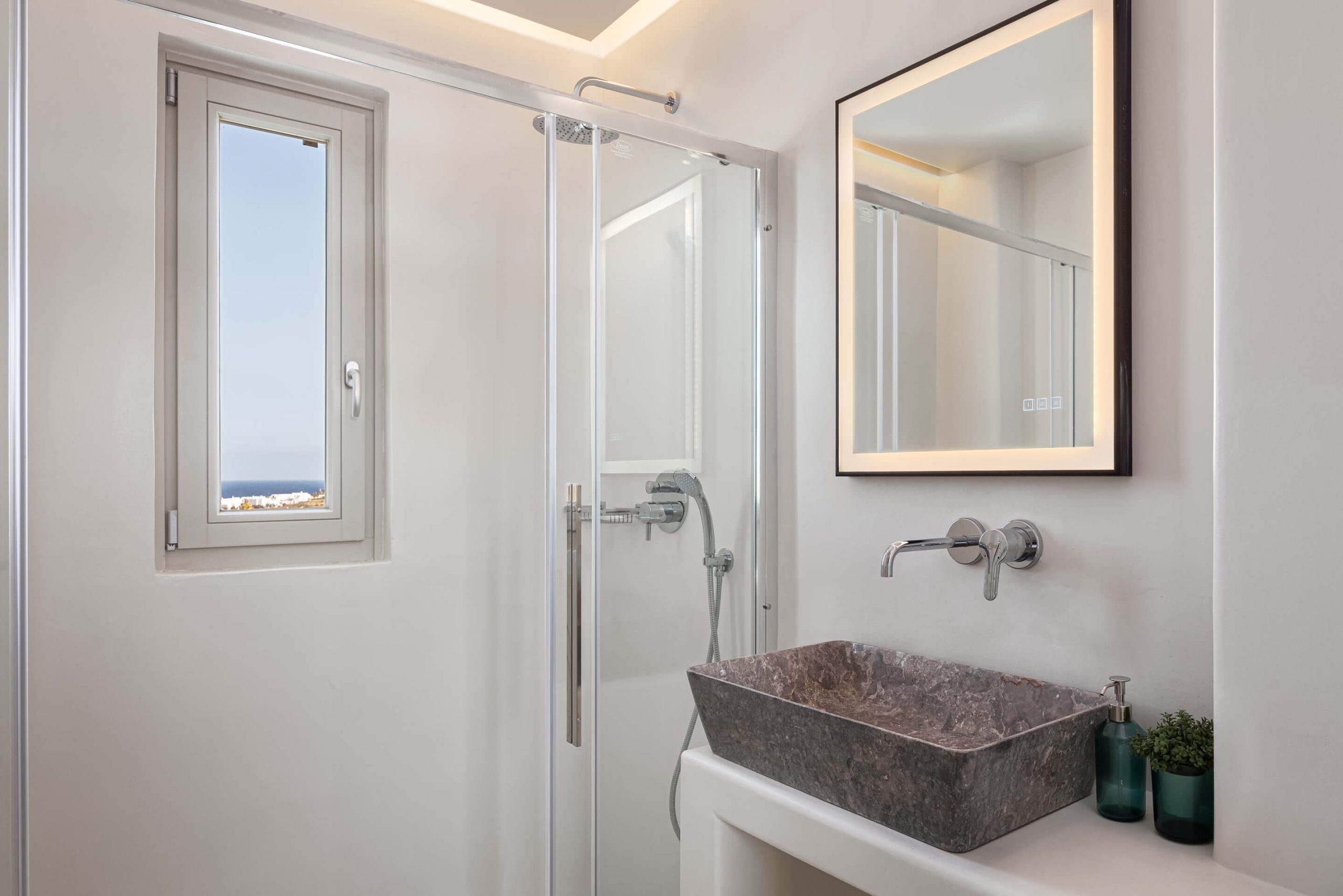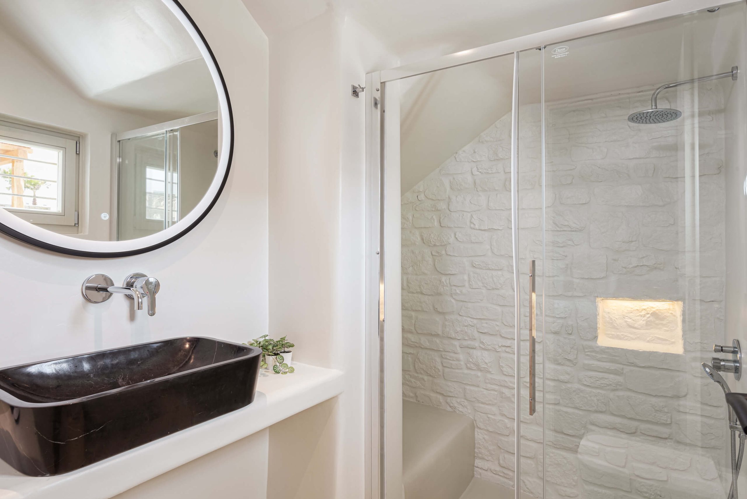 well-designed en-suite bathroom with shower and double sink | sea view room.