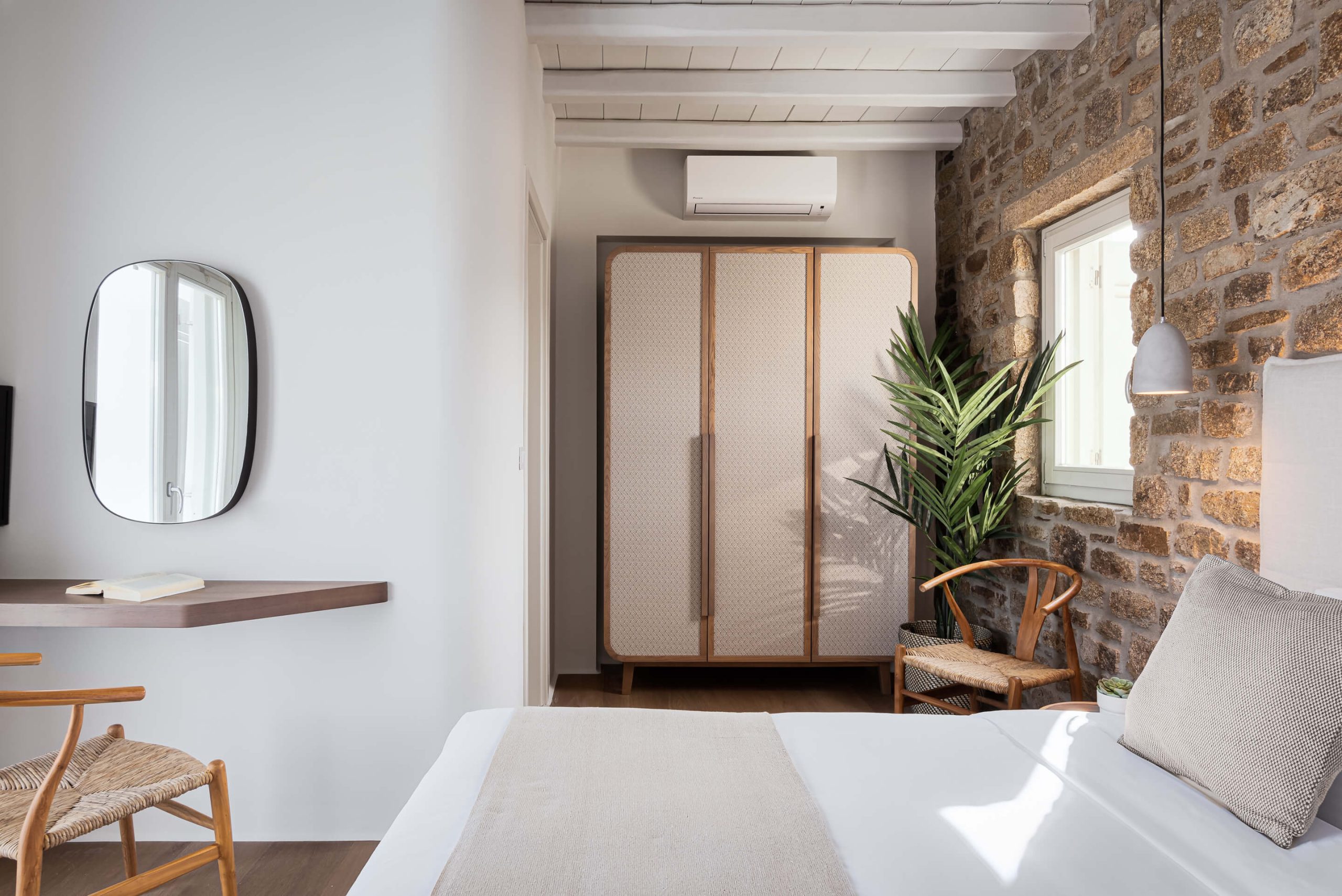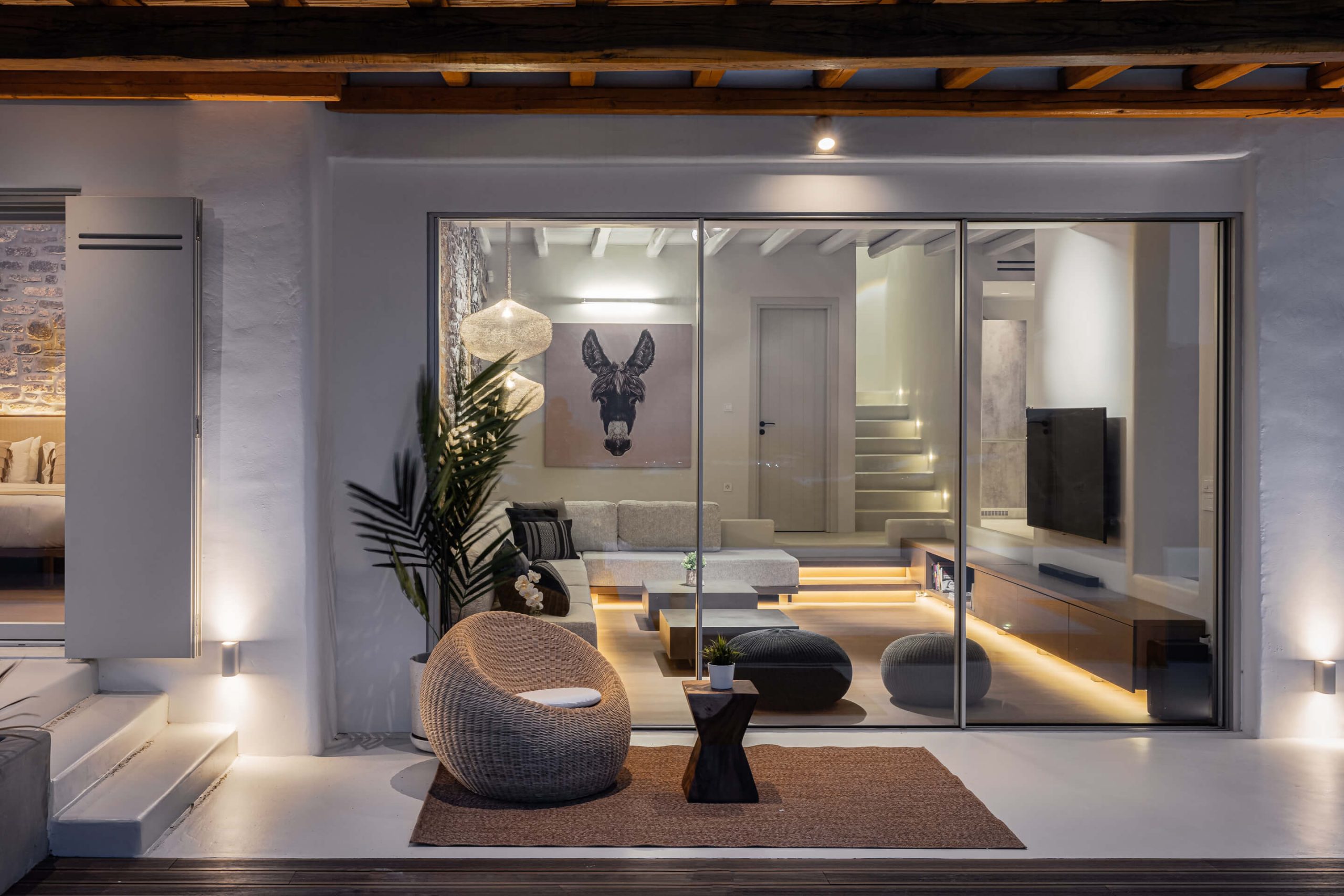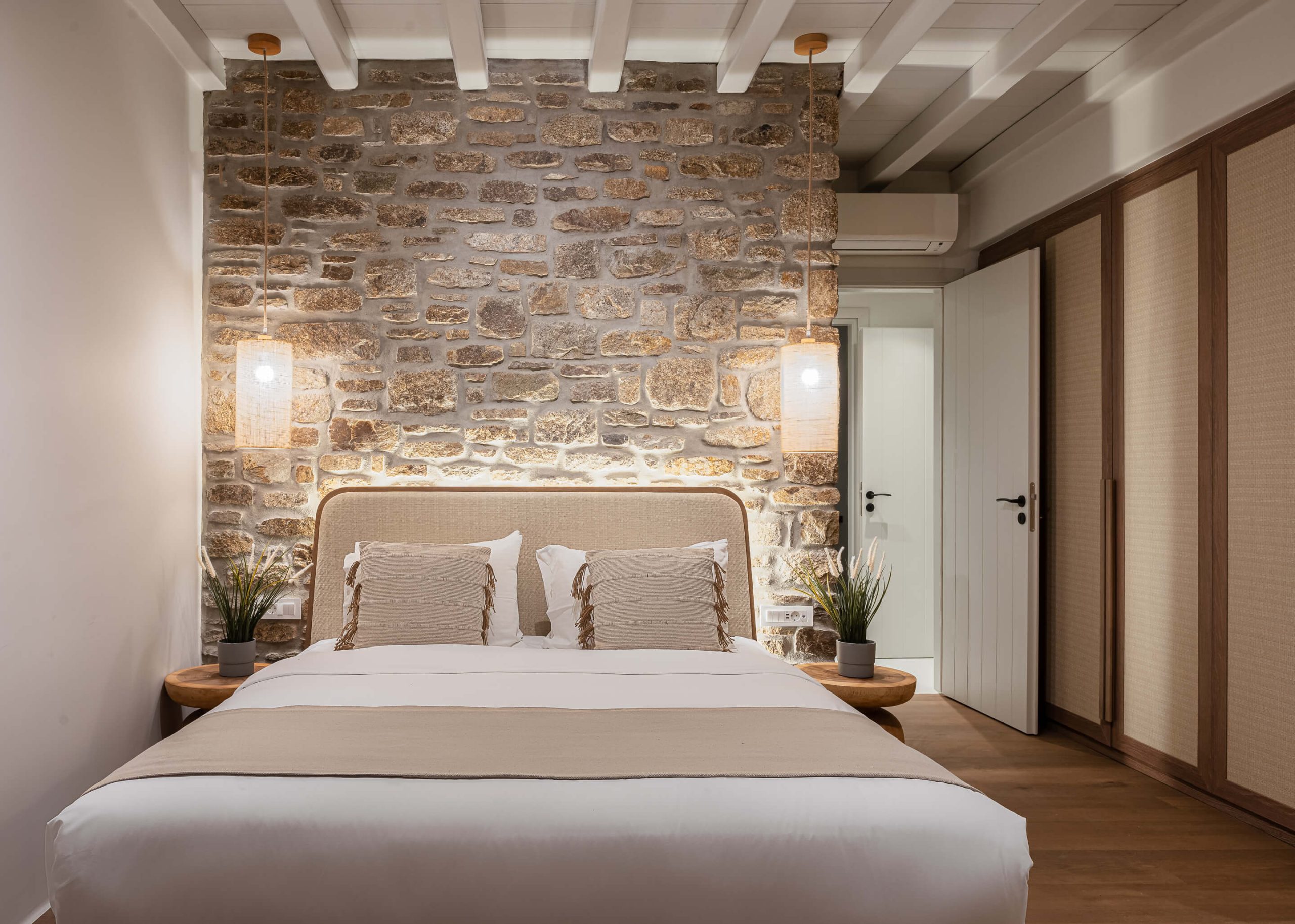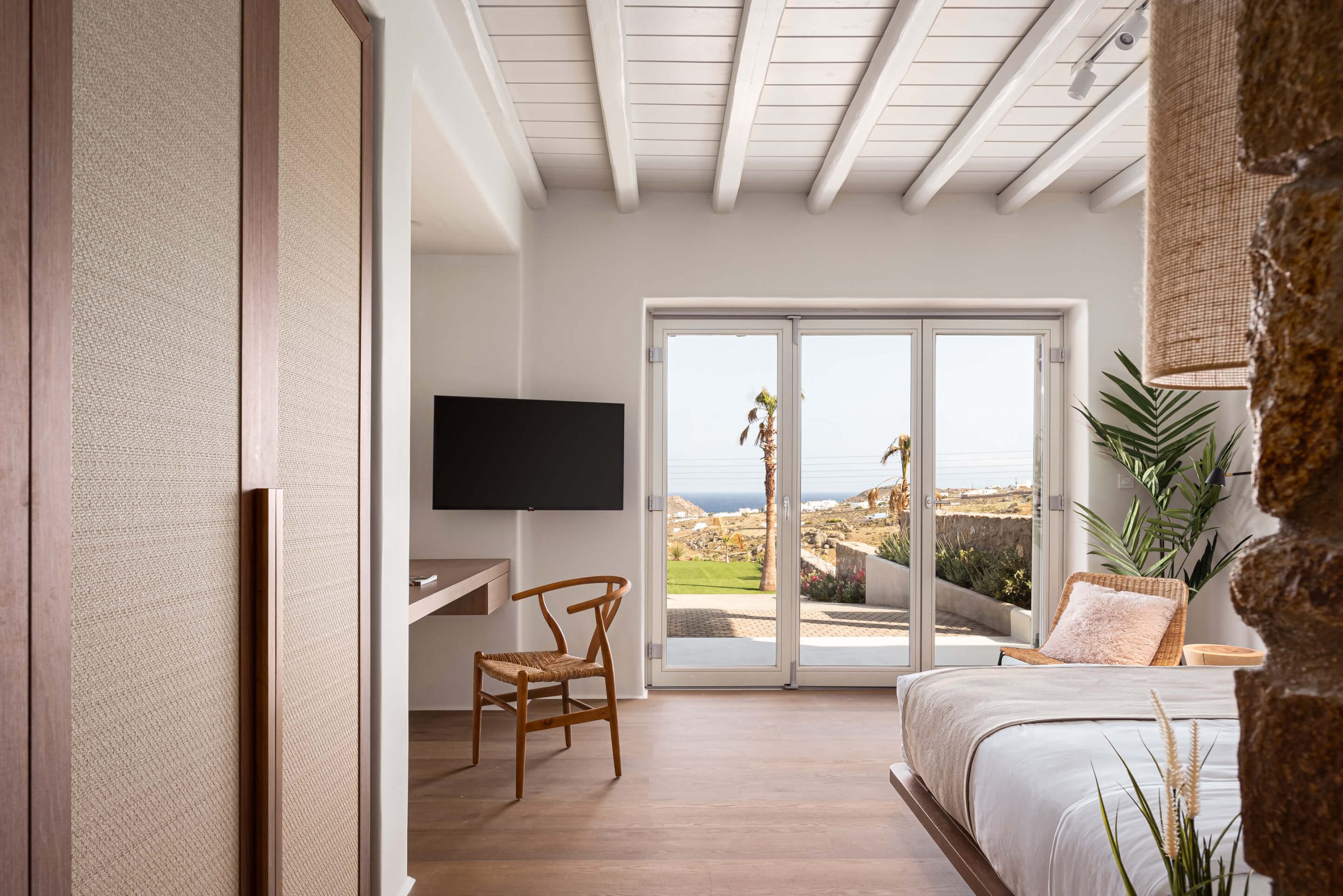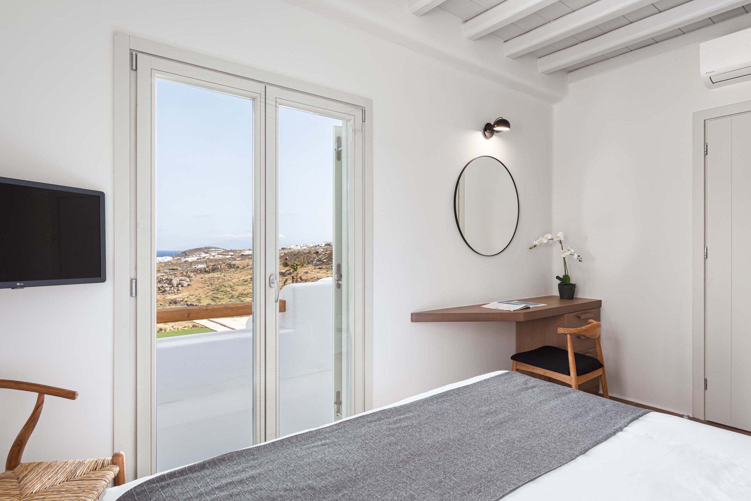 Room 1: double bed, TV, [A/C], safebox, direct access to the pool area via balcony doors,