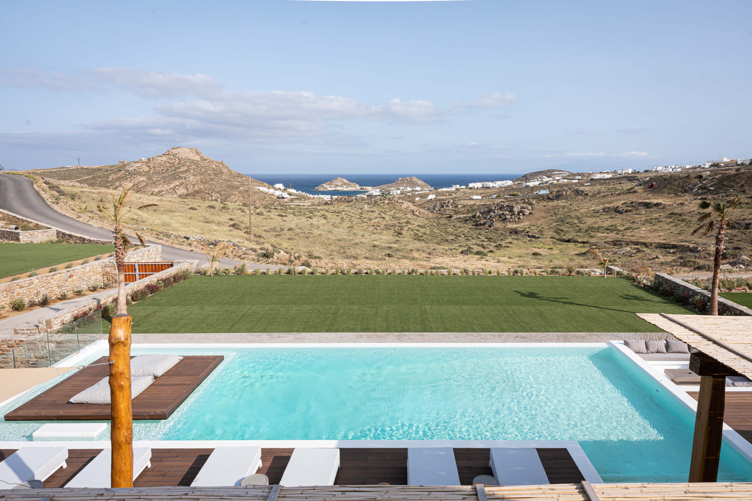 Entrance floor well-desinged private pool, loungers, outdoor kitchenette with built in-BBQ,
