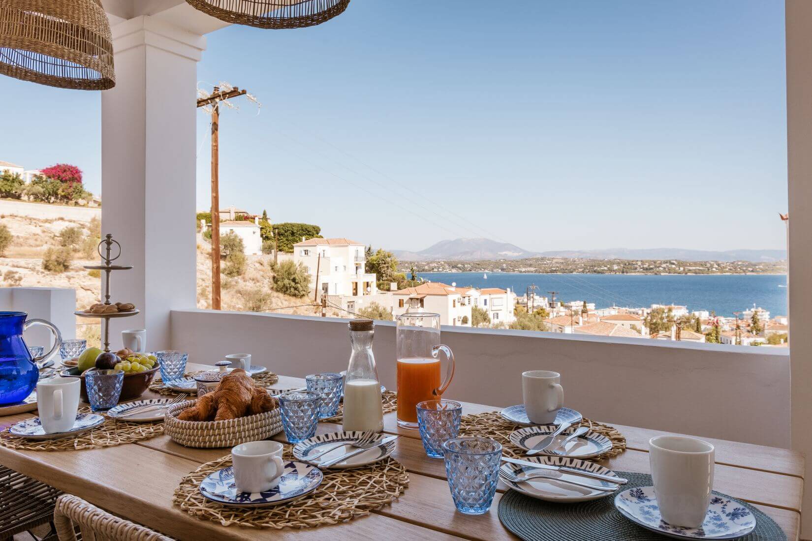 Nestled in a privileged, elevated spot on the outskirts of Spetses town, Olive Villa Rentals’ ultra-cozy property is perfect for enjoying serene moments of summer bliss while taking in the breathtaking Argosaronic views. Outside, the plain Spetsiote character casually lets the ample swimming pool provide the necessary luxury touch. Inside, the relaxing boho elements blend nicely with the sea-themed decorations, subtly inviting guests to honor the island’s deep maritime heritage.