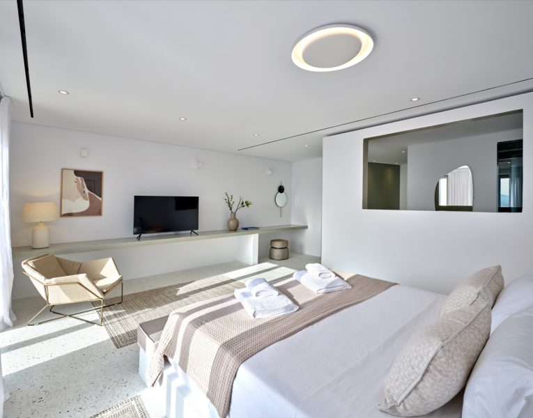 The luxurious Cycladic Villa with minimal decoration offers to its guests all the exclusive amenities needed for a unique accommodation. Villa Abrielle is suitable for families or groups of people who are seeking tranquility moments.