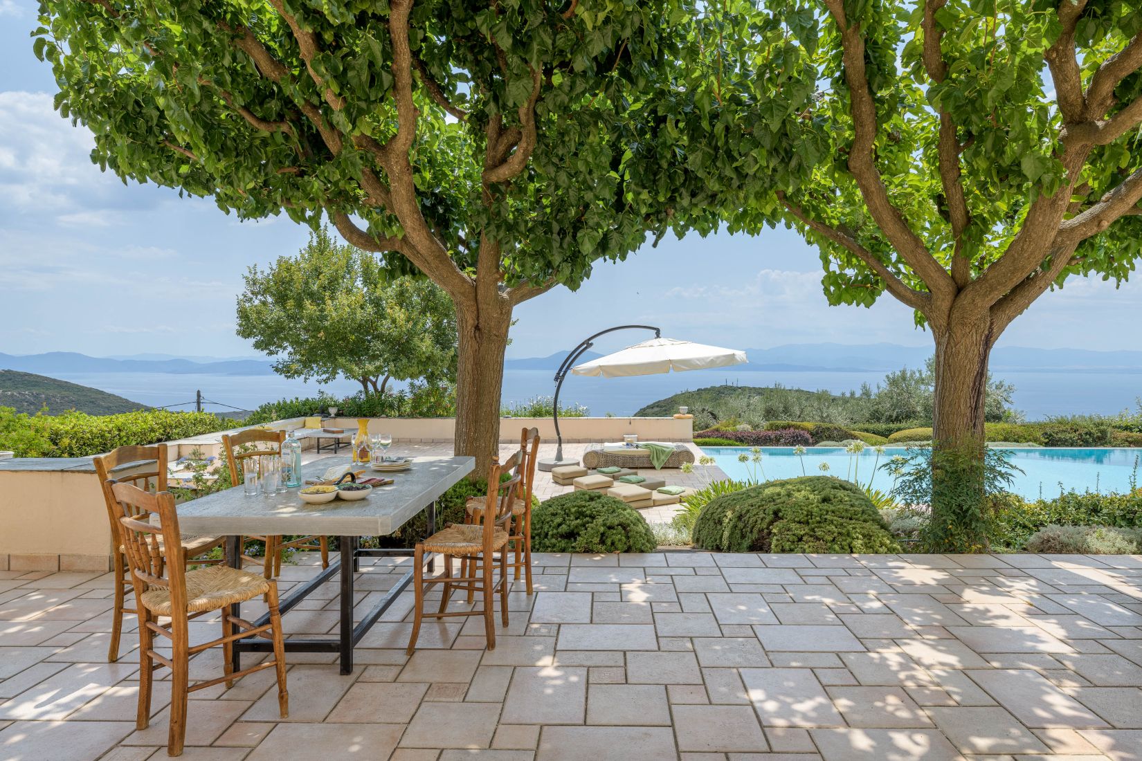 Guests can unwind by the infinity-style pool, enjoy a barbecue with loved ones, or simply relax on the sun loungers surrounded by meticulously landscaped gardens. The villa’s elevated position ensures sweeping views of the gulf and lush countryside — a constant reminder of Pelion’s natural beauty.