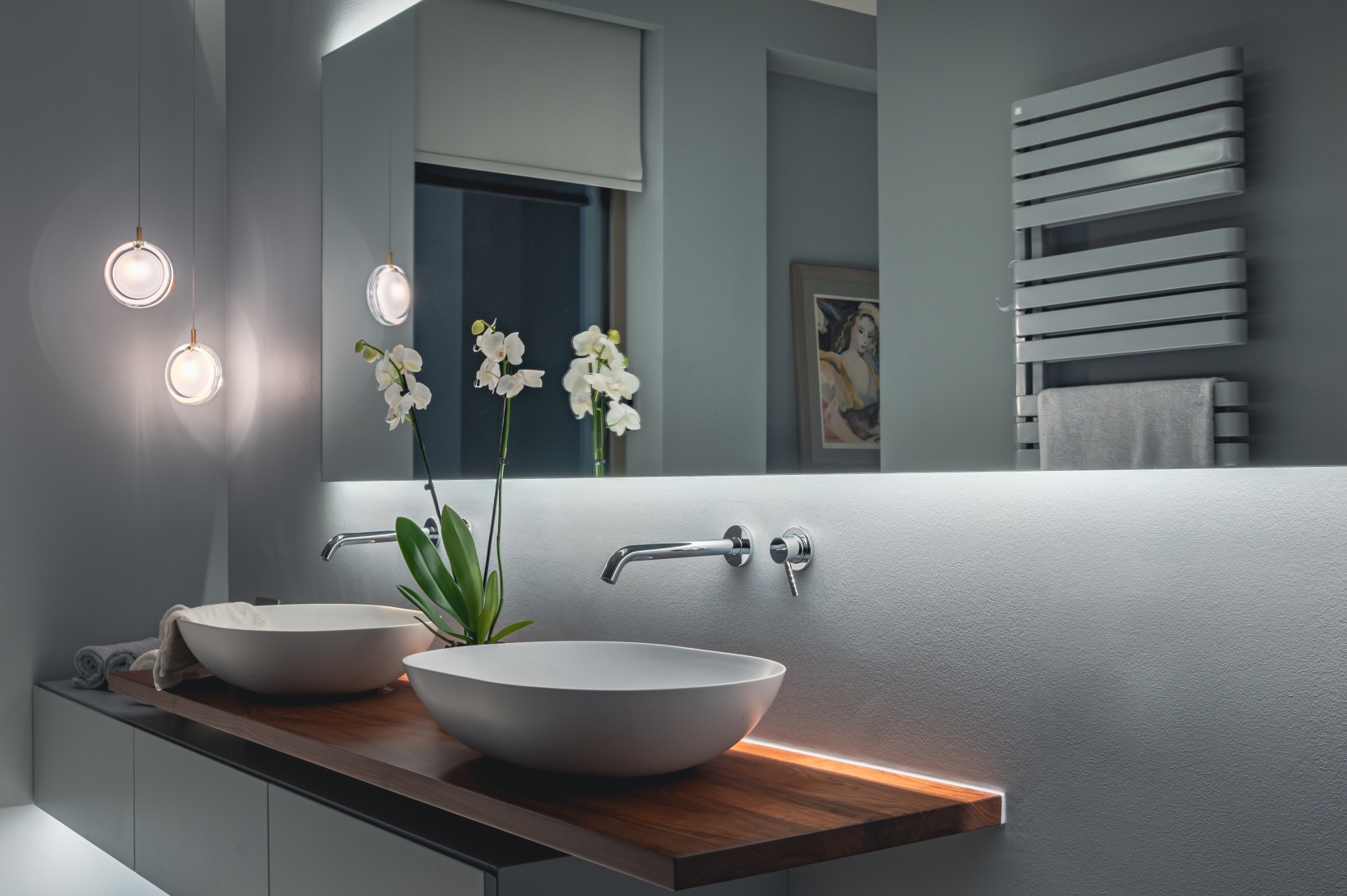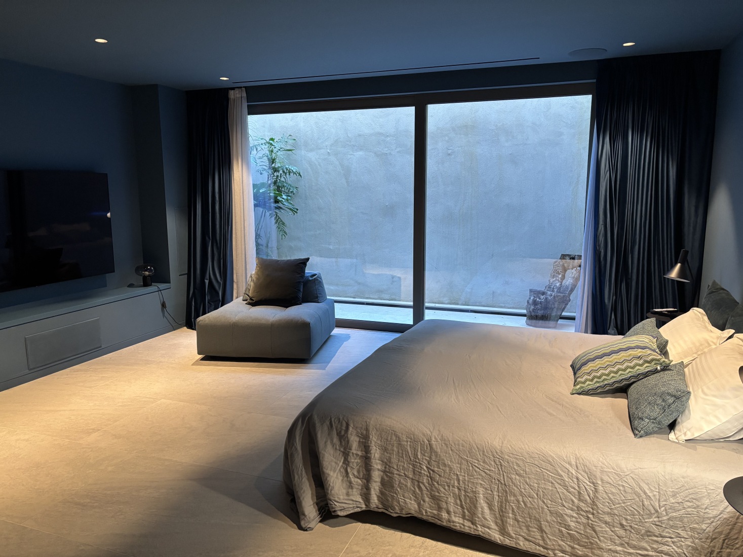 On the same level, there is an ensuite master bedroom with king size bed (180×210) and 2 ensuite guest bedrooms with a double bed (160×200) and a double bed (180×200) or 2 single beds (2x 90×200). On this level, there is also an office area and a dressing room.
