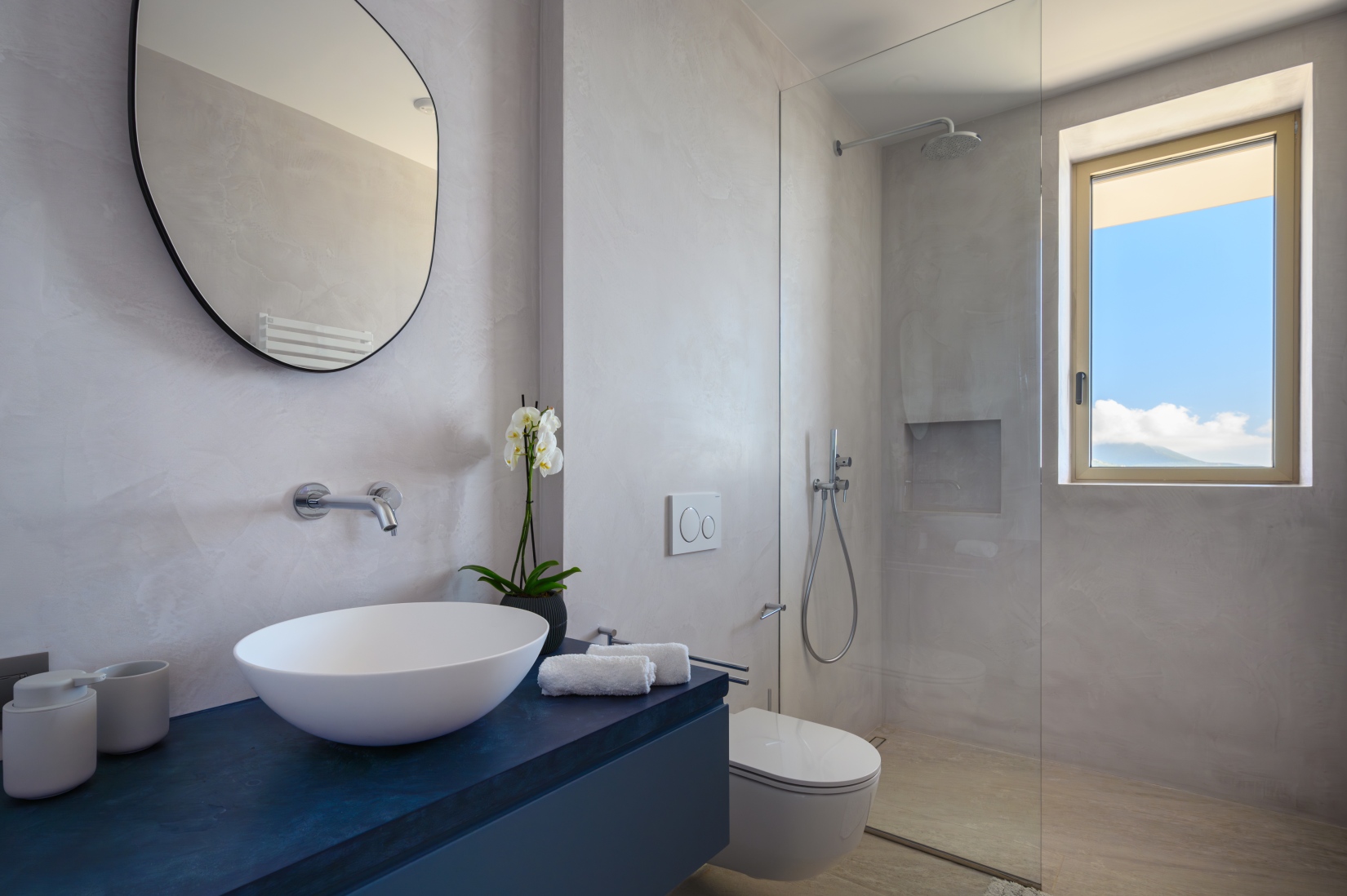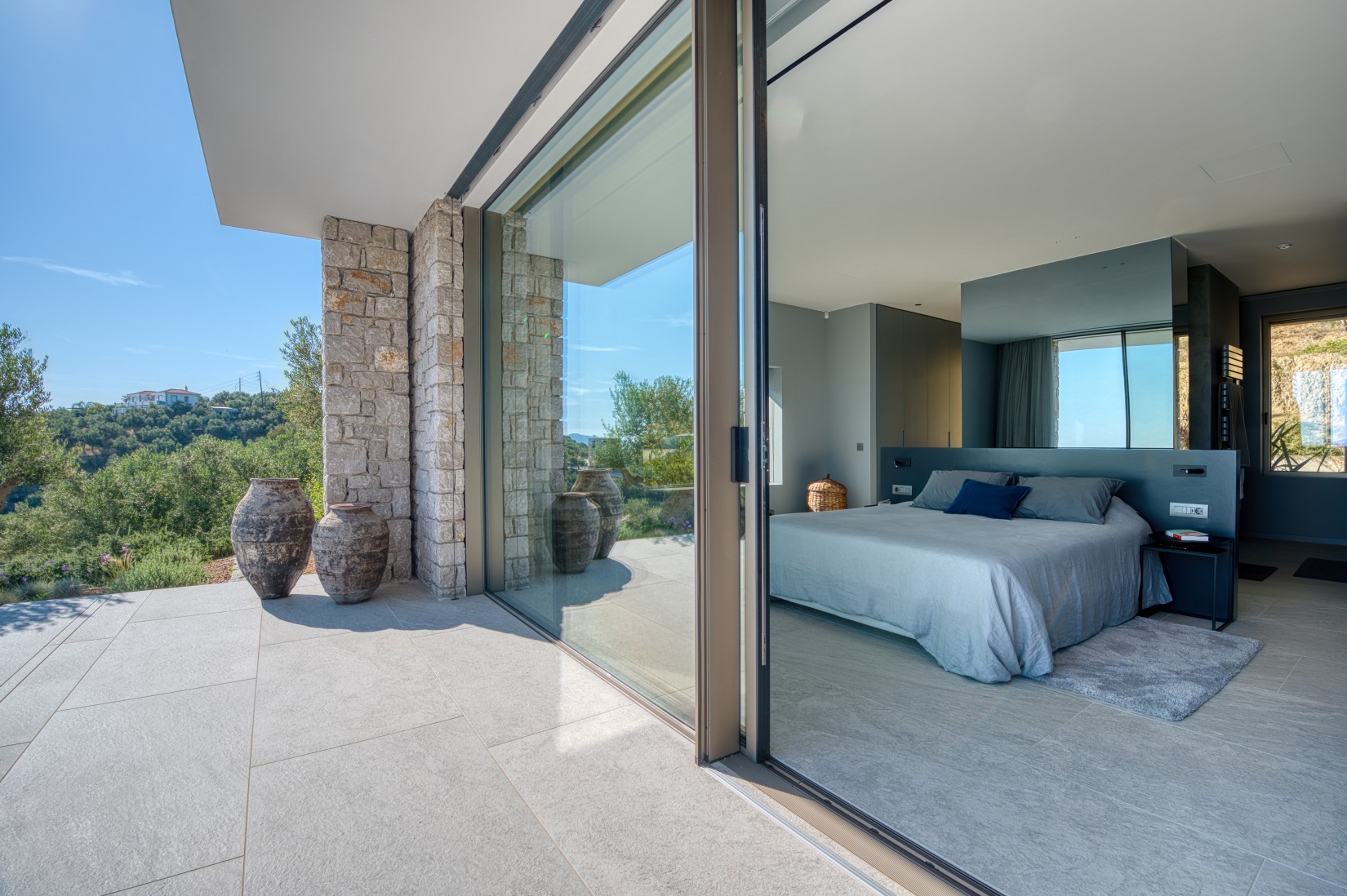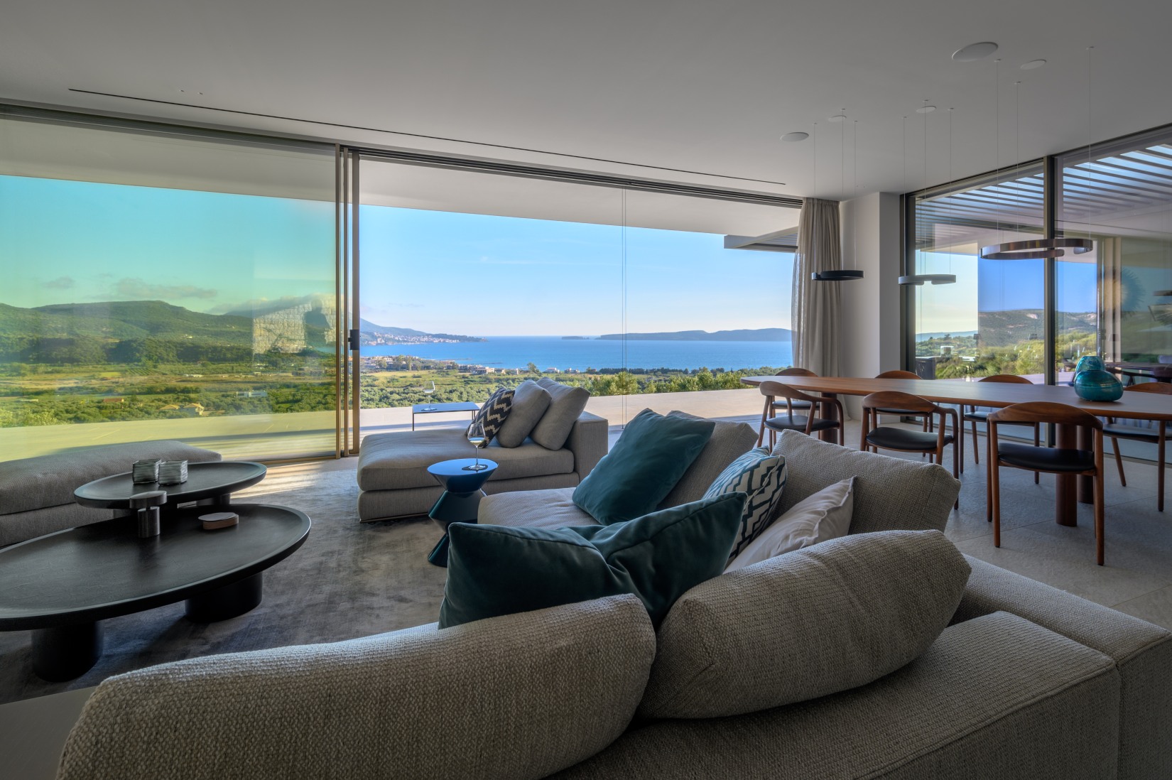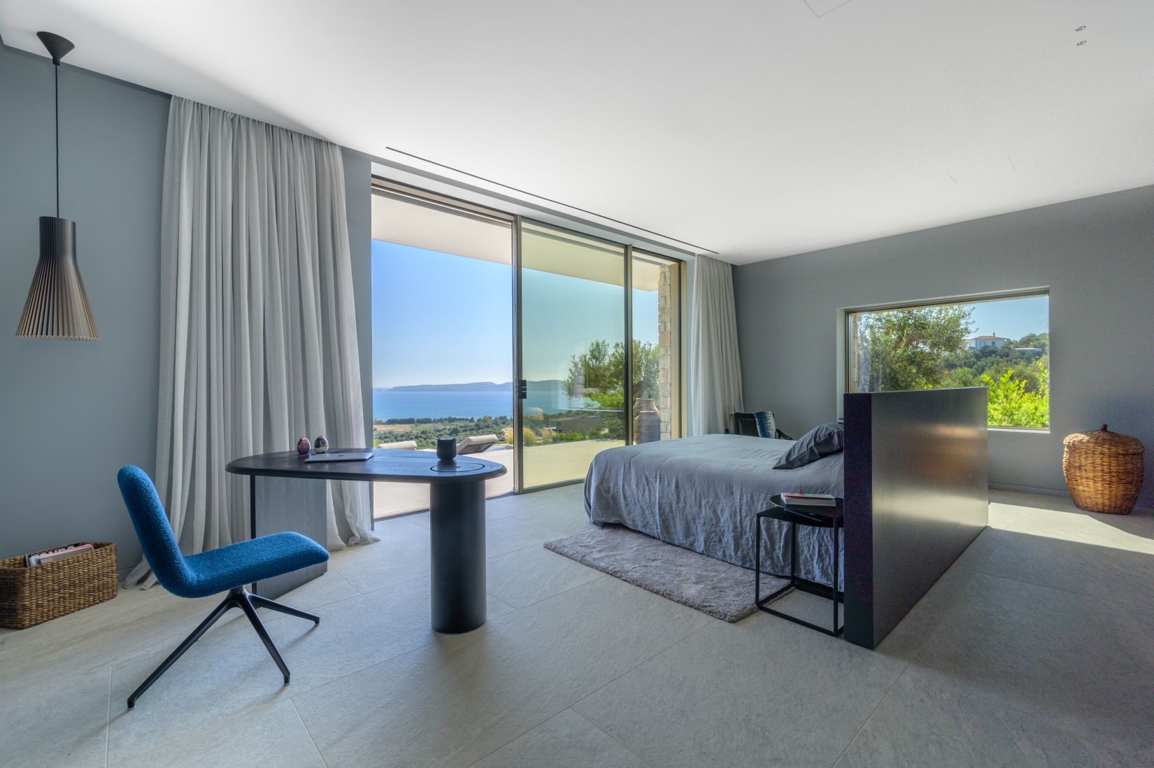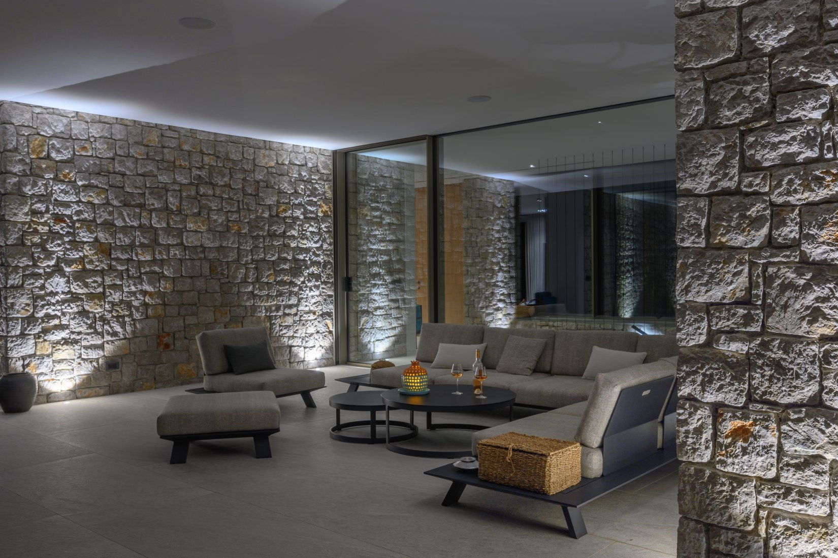 The outdoor area with wonderful endless sea view, the daily sparkling light all over the place and at the same time the shady corners including lounge area, an exterior dining space will give the opportunity at the guests to enjoy the amazing landscape and create unforgettable moments. The infinity large swimming pool with relaxing areas is definitely a hot stop during the stay.