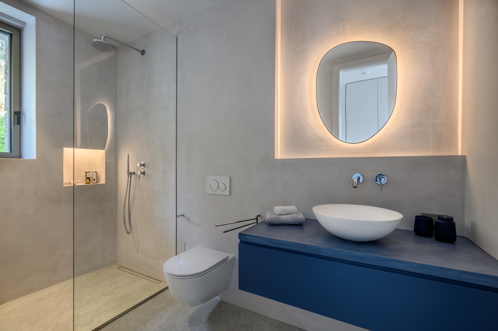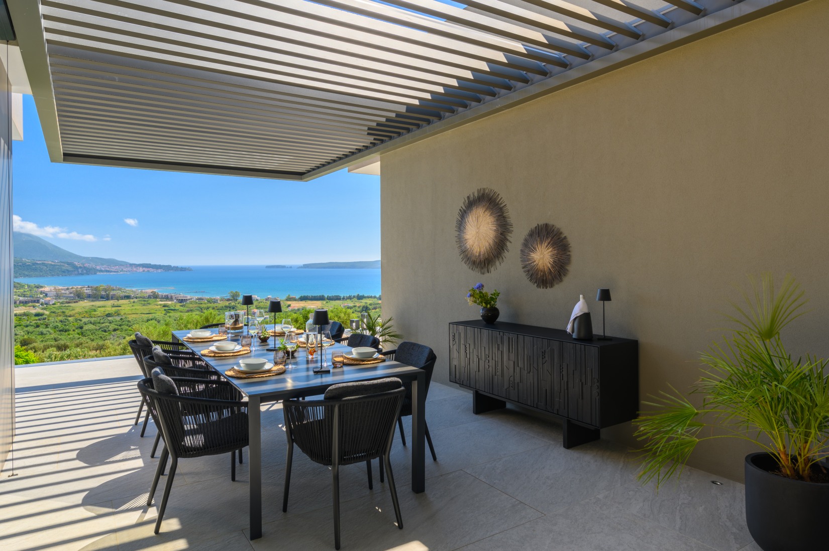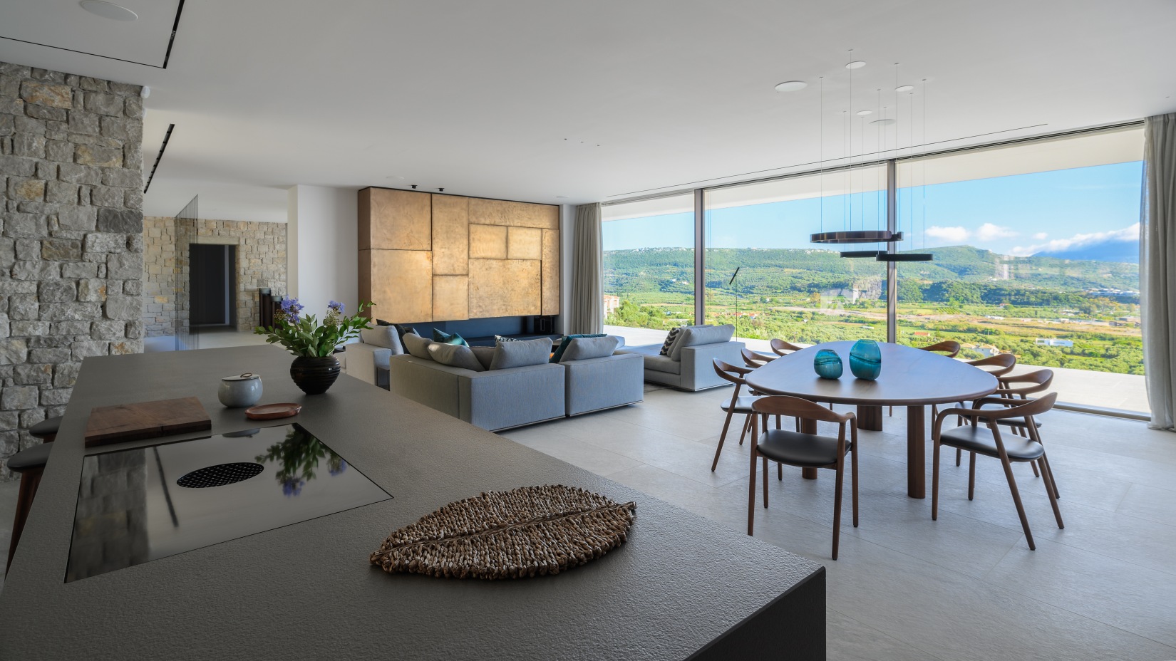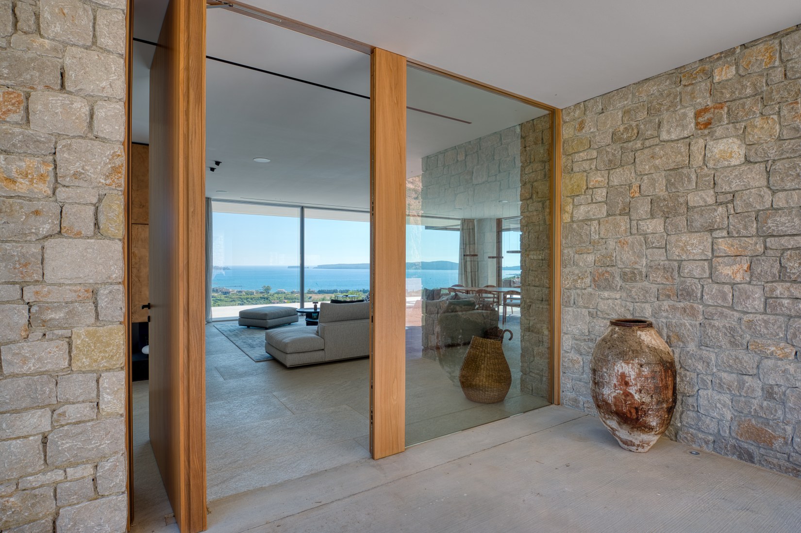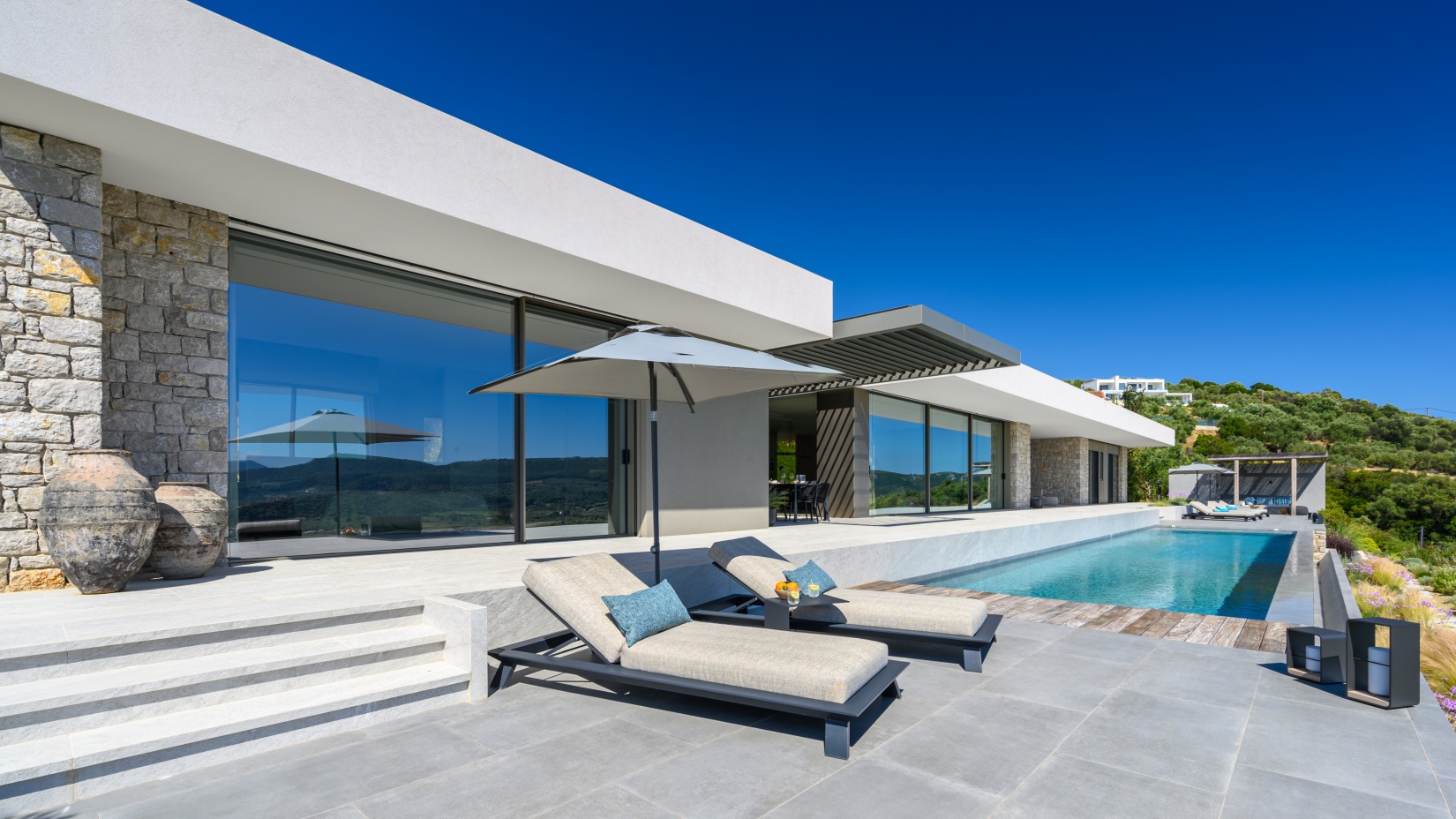 The outdoor area with wonderful endless sea view, the daily sparkling light all over the place and at the same time the shady corners including lounge area, an exterior dining space will give the opportunity at the guests to enjoy the amazing landscape and create unforgettable moments. The infinity large swimming pool with relaxing areas is definitely a hot stop during the stay.