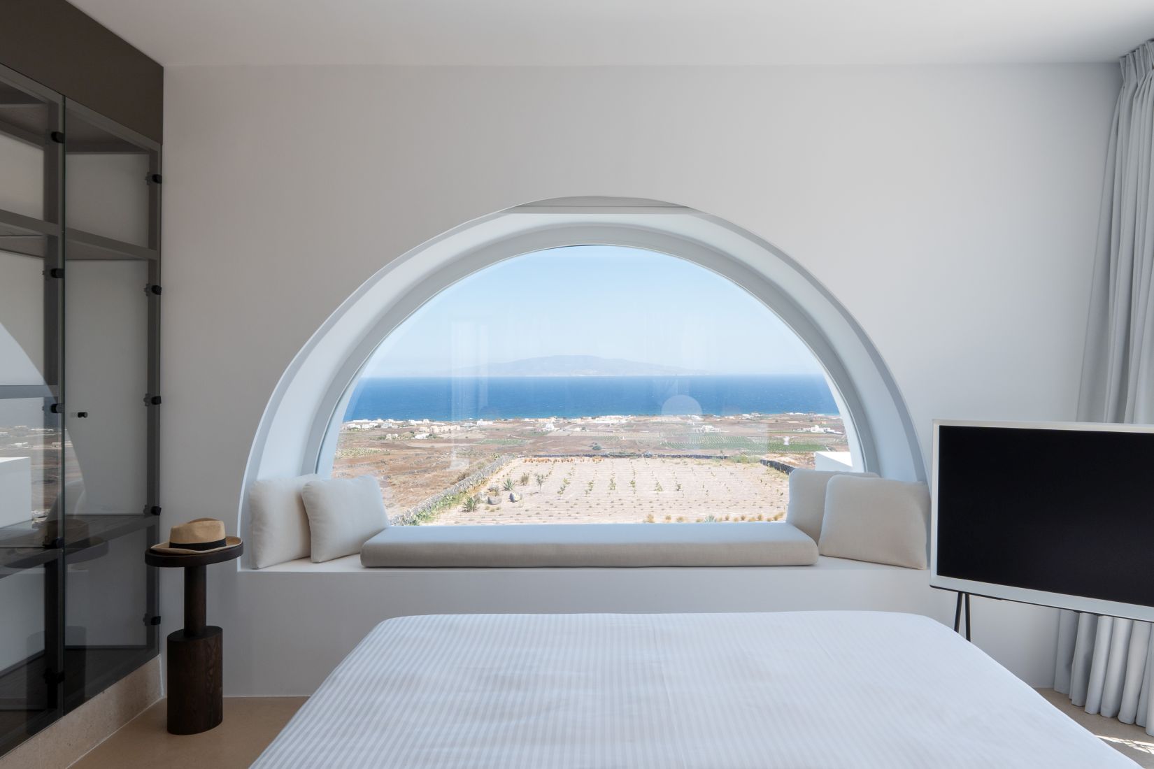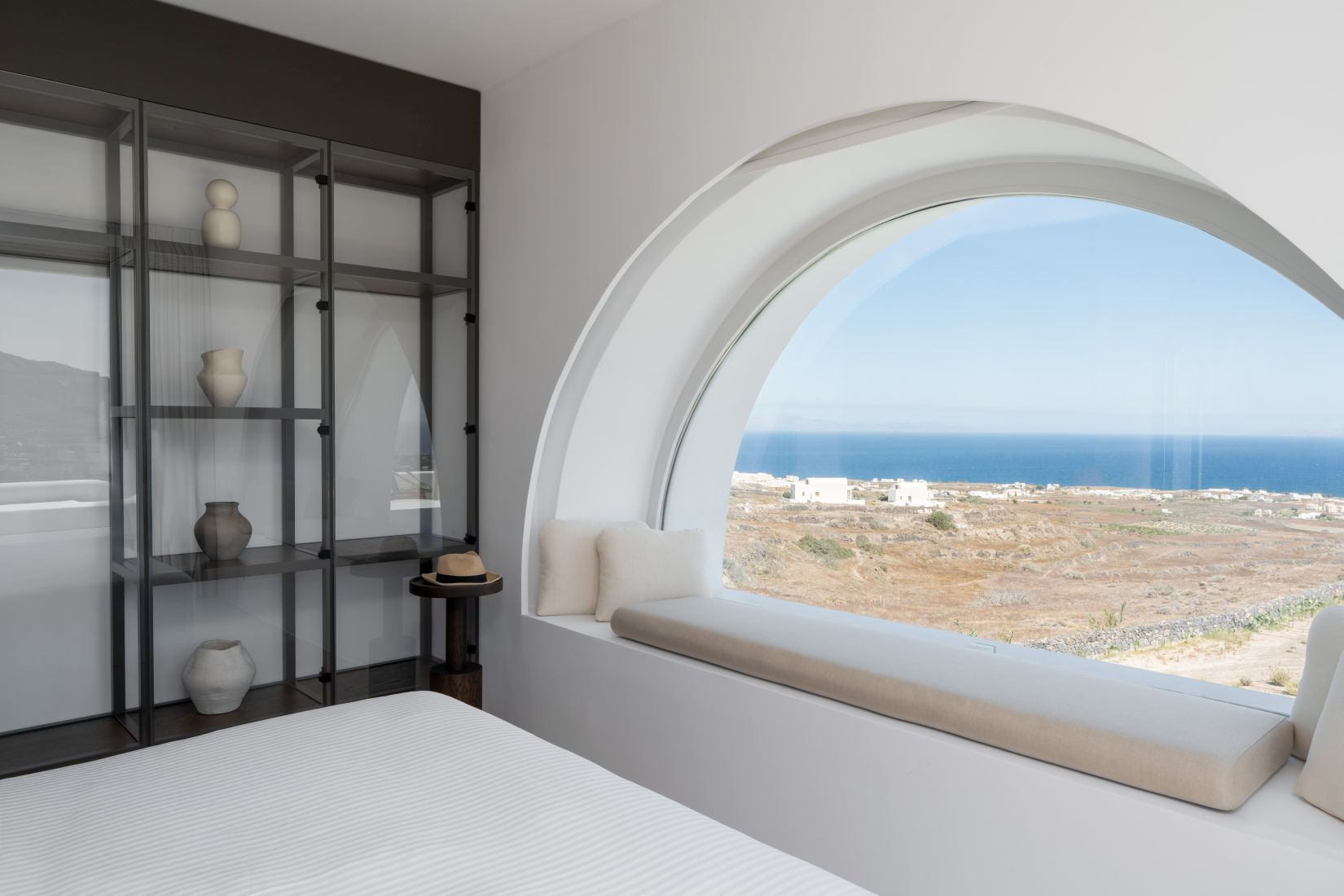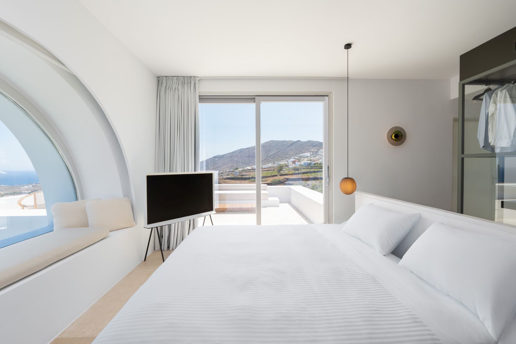 • Queen bedroom with partial sea view, open bathtub, and en suite bathroom with double sinks and shower cabin
