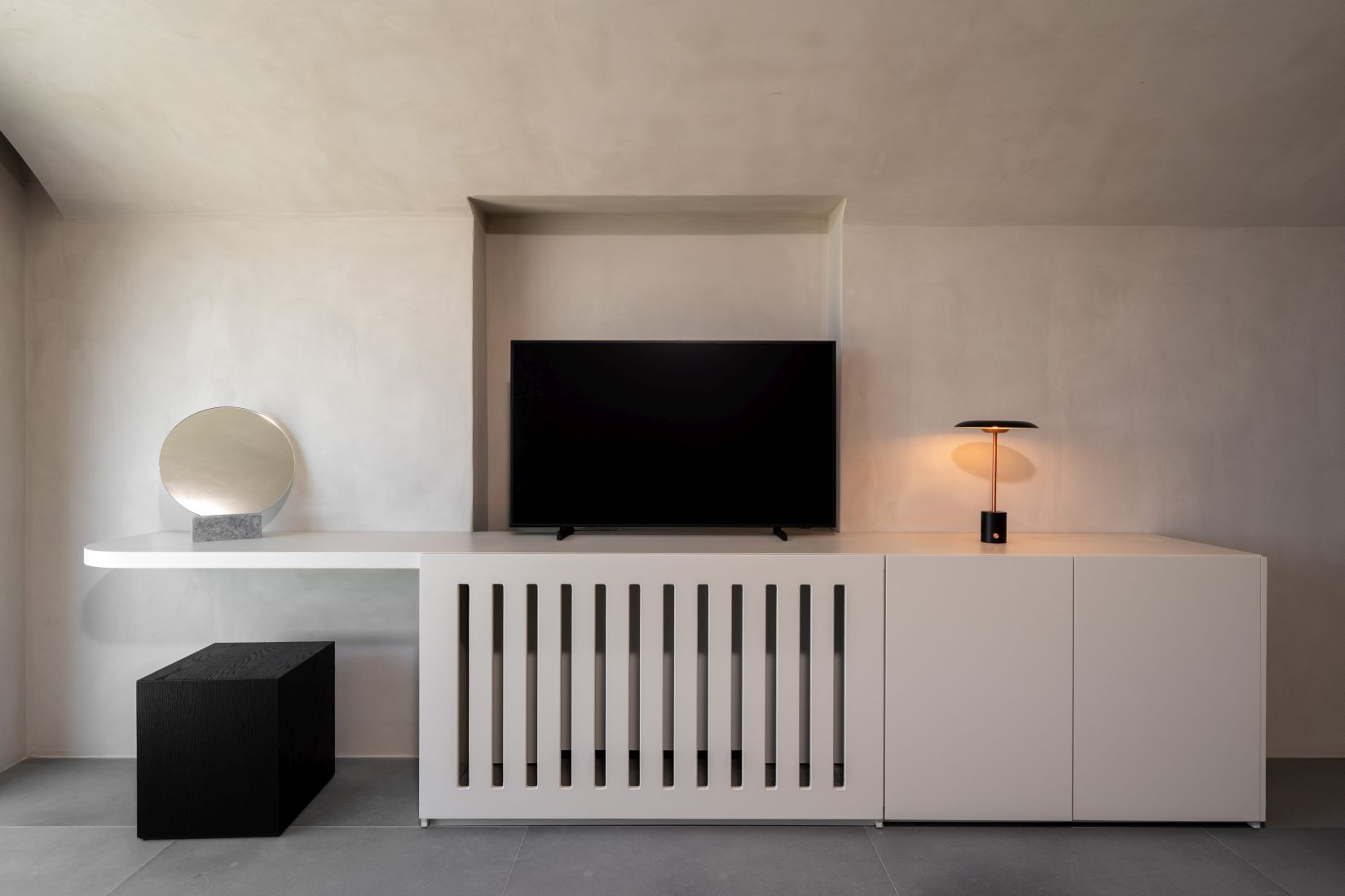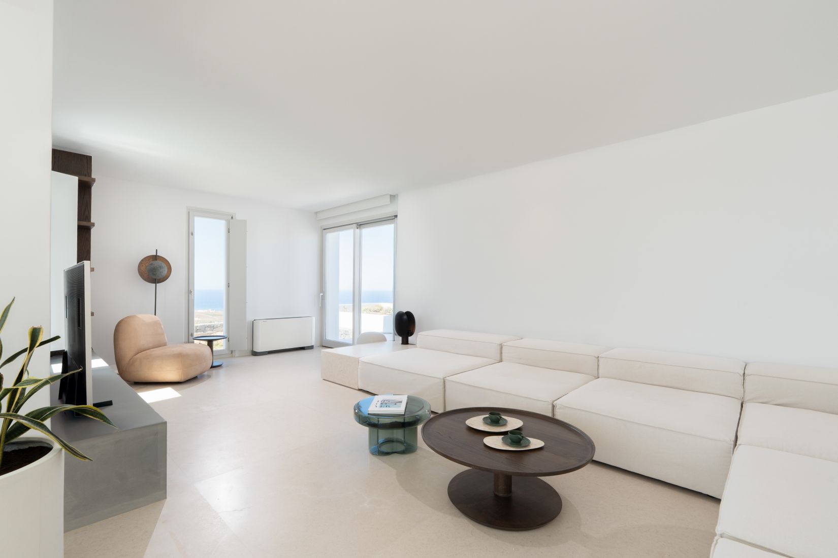 • Spacious living room with oversized designer sofa, flat-screen TV, and Marshall sound system