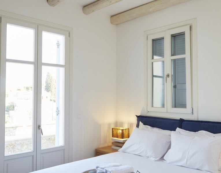 The upper level of the villa features three additional bedrooms designed for comfort and privacy: The master bedroom boasts an ensuite bathroom and a spacious balcony, offering breathtaking views of Spetses town and the shimmering sea. There are 2 loungers on this private balcony for extra comfort and privacy and relaxation. The second double ensuite bedroom provides a cozy retreat, while the single bedroom includes a convenient WC.