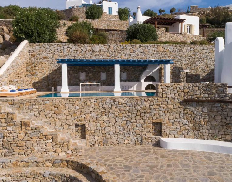 The villa is designed with tasteful decorations, that reflect the Mykonian elegance and includes a 72 m2 infinity pool that flows off into the Aegean Sea.