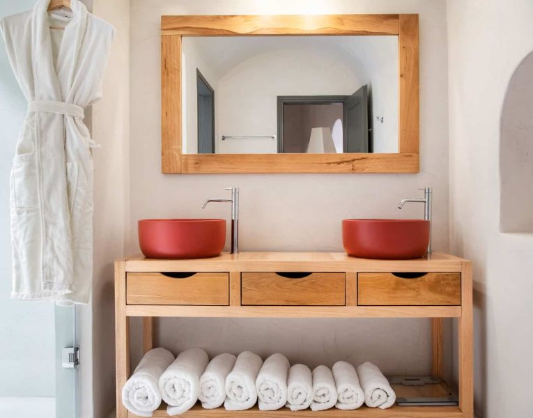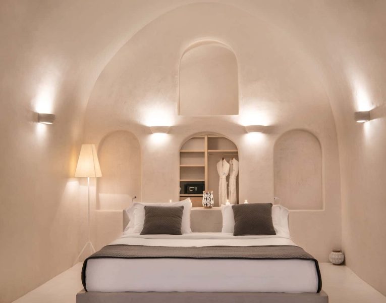 On the outdoor area there is a large terrace with post card-like views of the Aegean Seas as well as Santorini’s Caldera and an outdoor dining table. The beautiful scenery will captivate your eyes along with the unique sunset views and will offer you truly unforgettable experience.