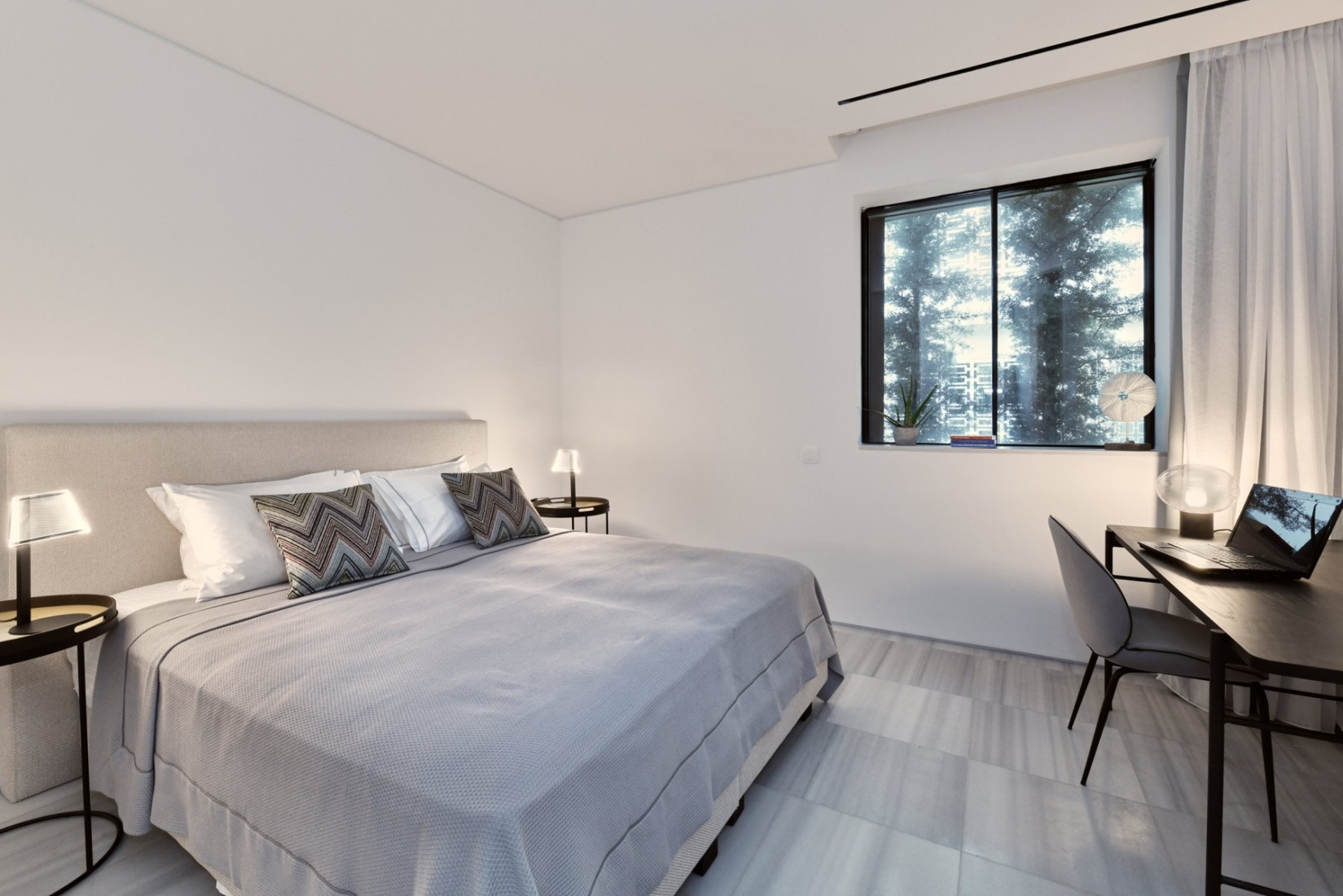 - Master Bedroom – Double/Twin Beds with en-suite bathroom with shower, private balcony and garden view